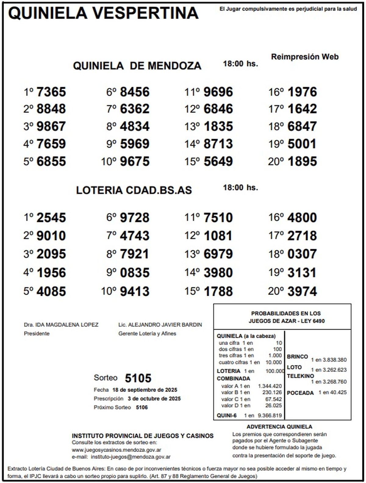 Resultados Quiniela de Mendoza: La Vespertina del 18 de septiembre de 2025