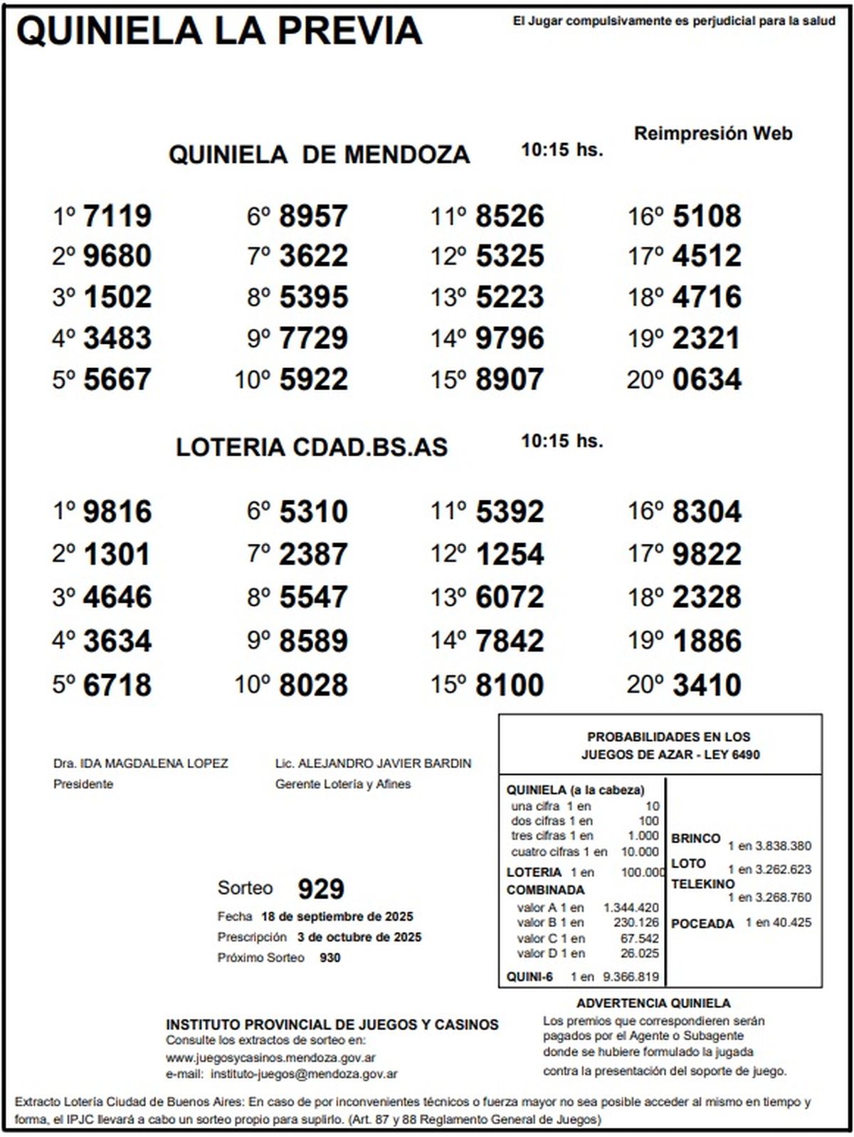 Resultados Quiniela de Mendoza: La Previa del 18 de septiembre de 2025