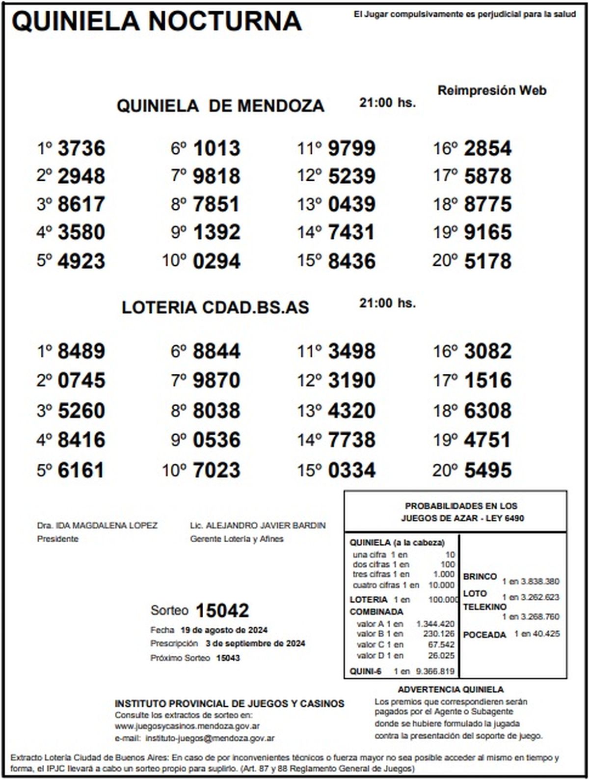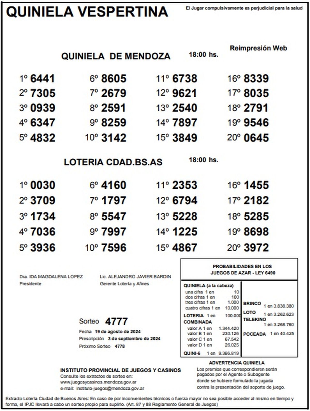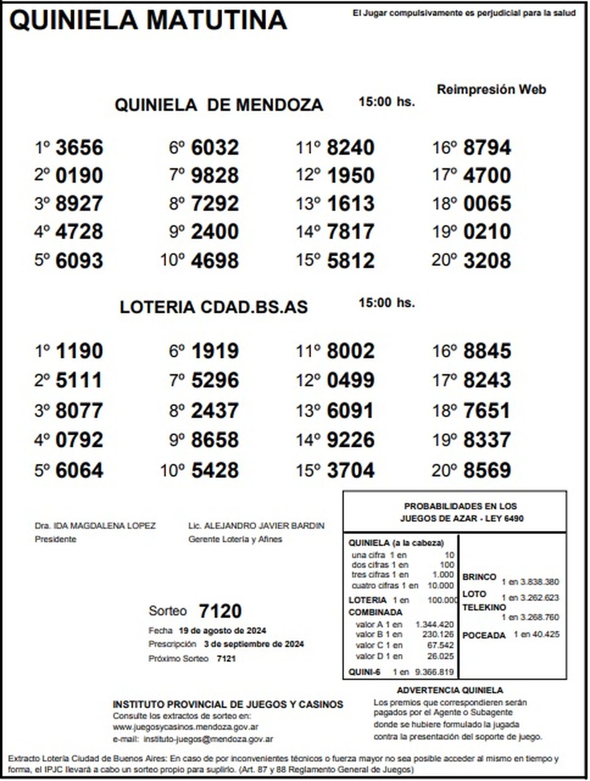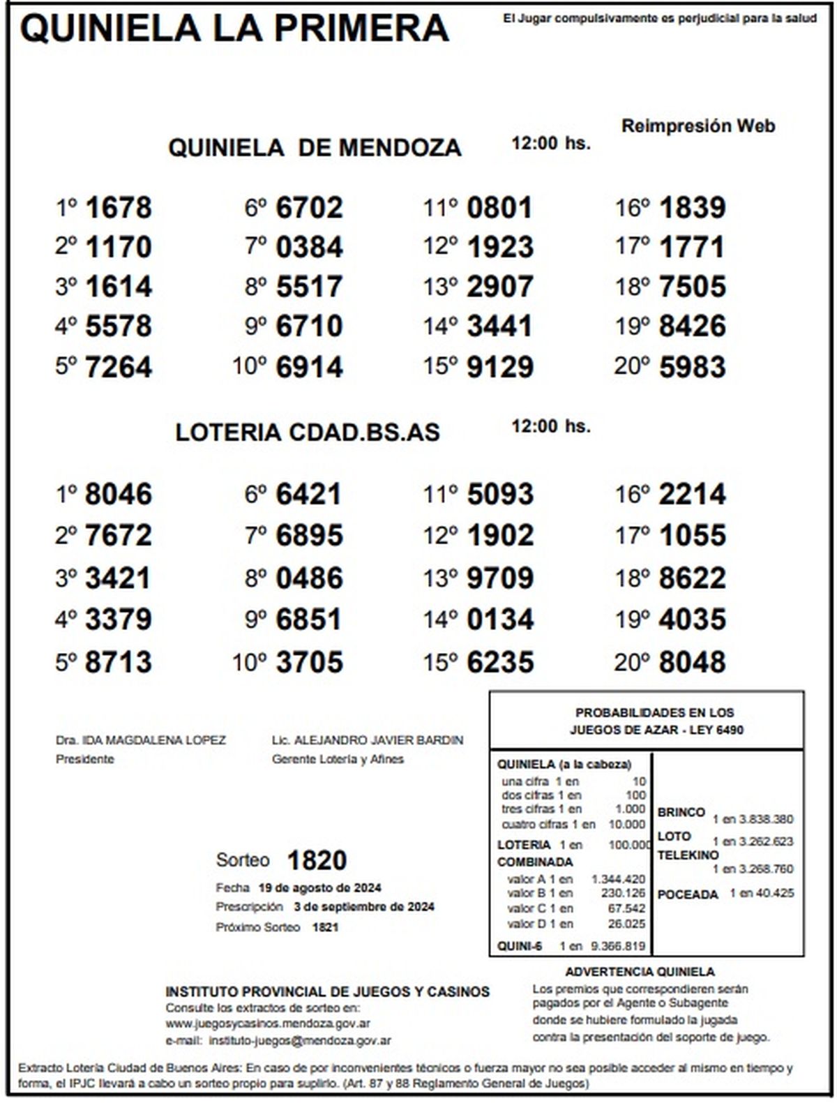 Resultados Quiniela de Mendoza: La Primera del 19 de agosto 2024