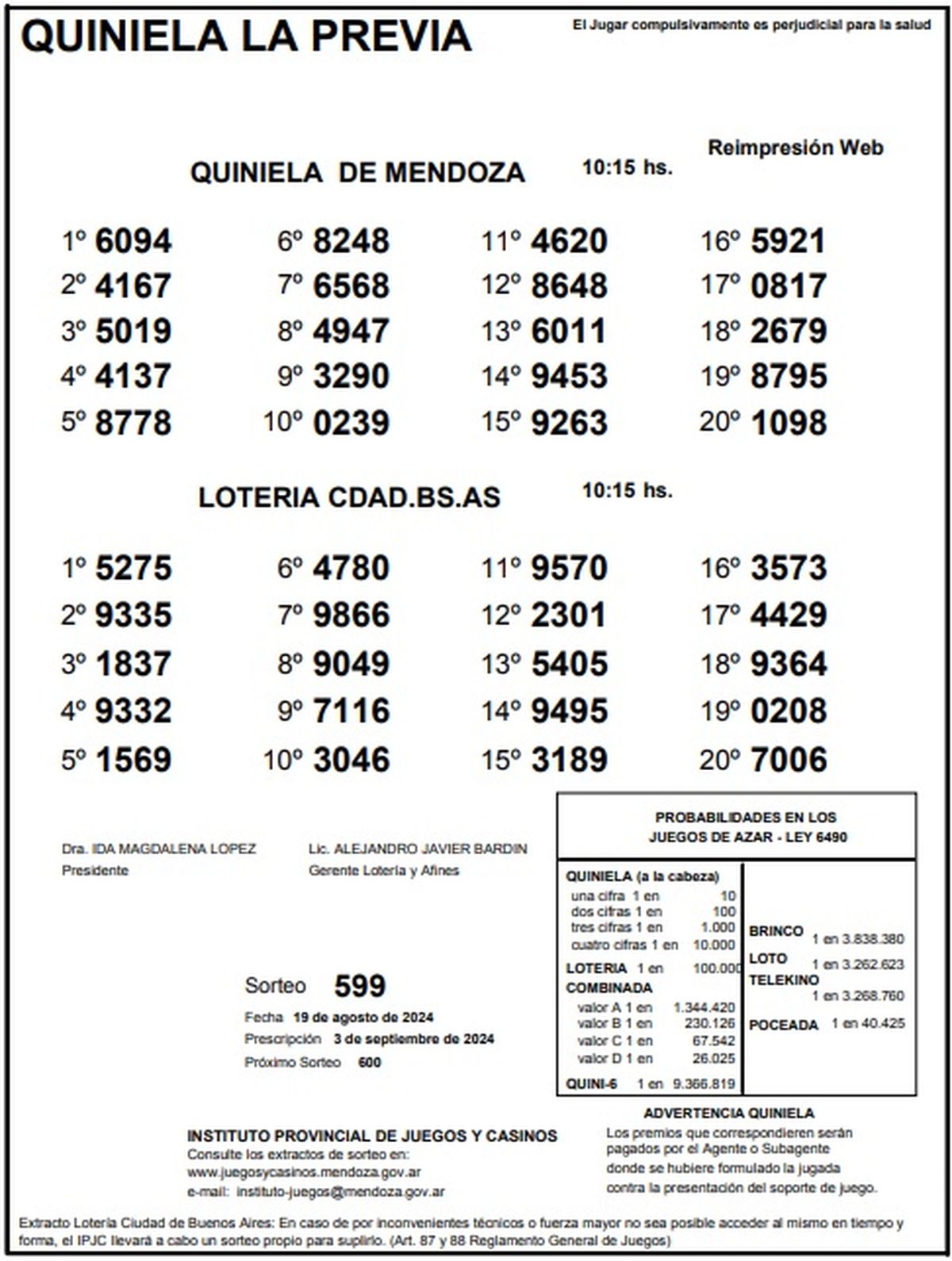Resultados Quiniela de Mendoza: La Previa del 19 de agosto 2024