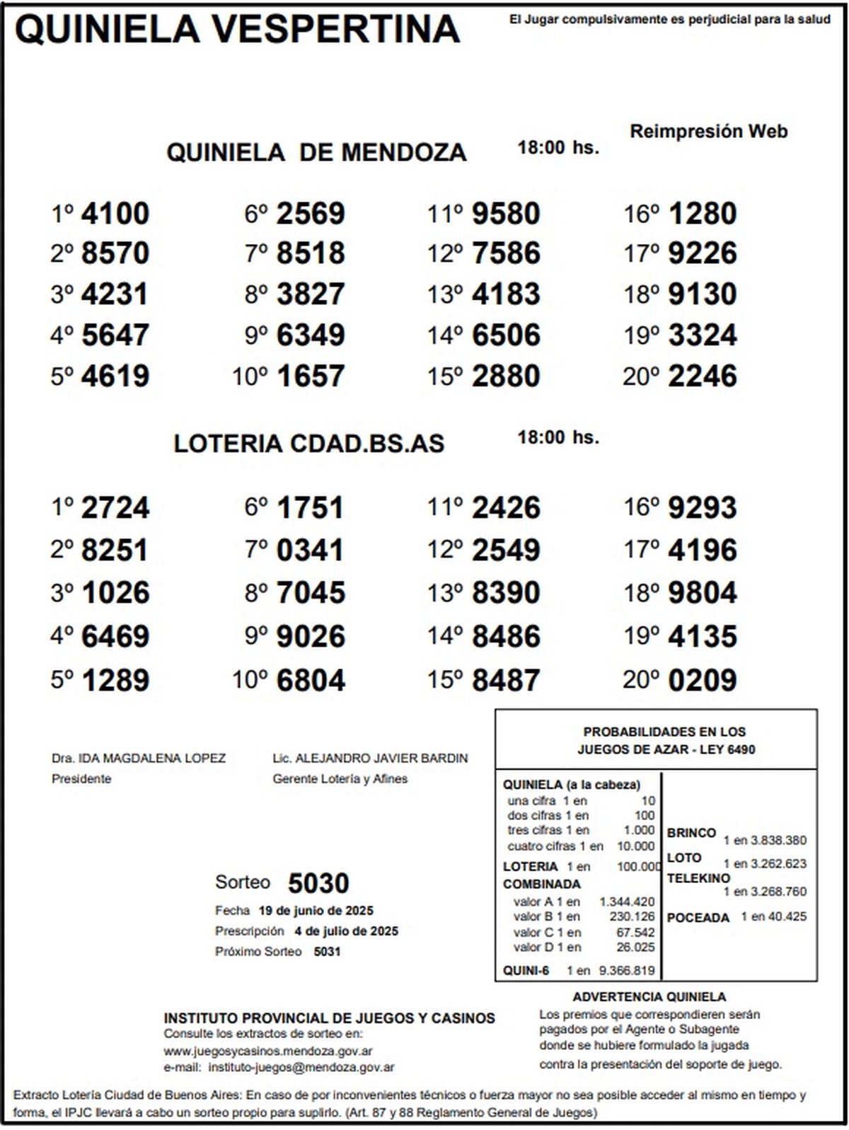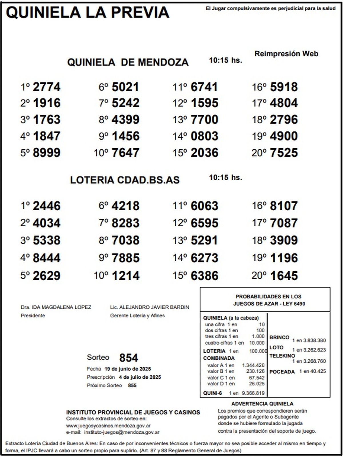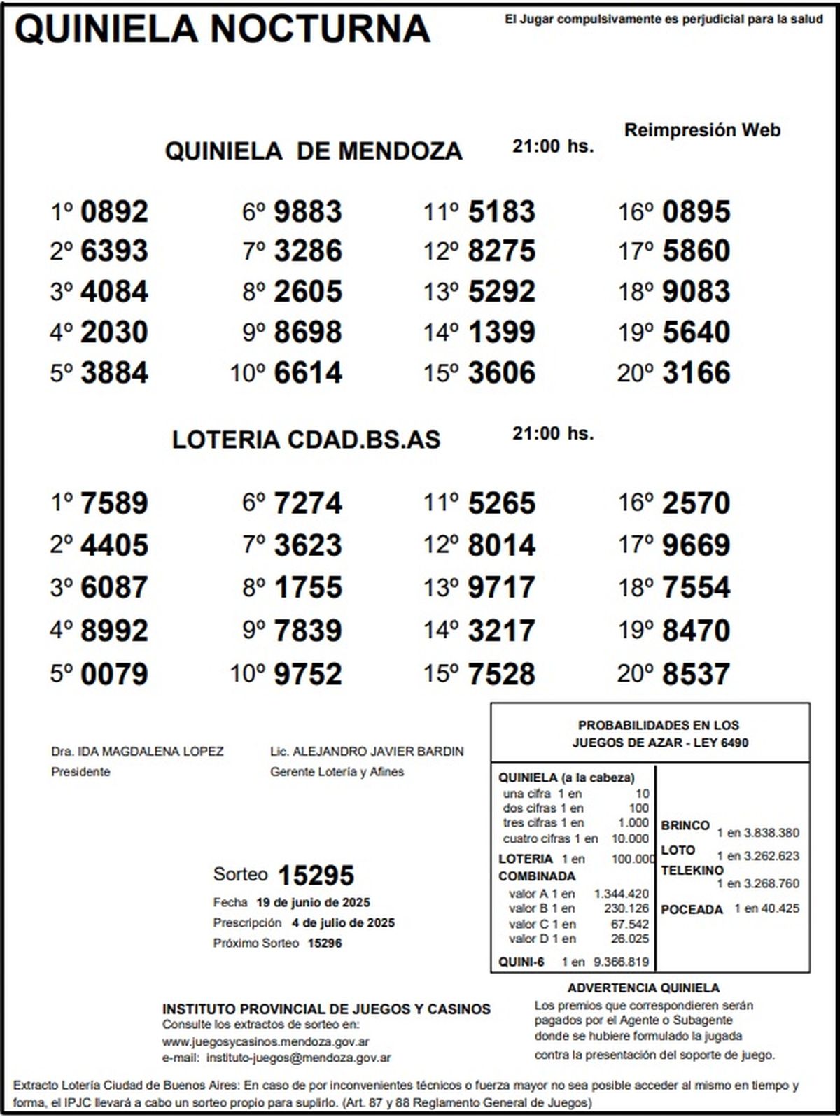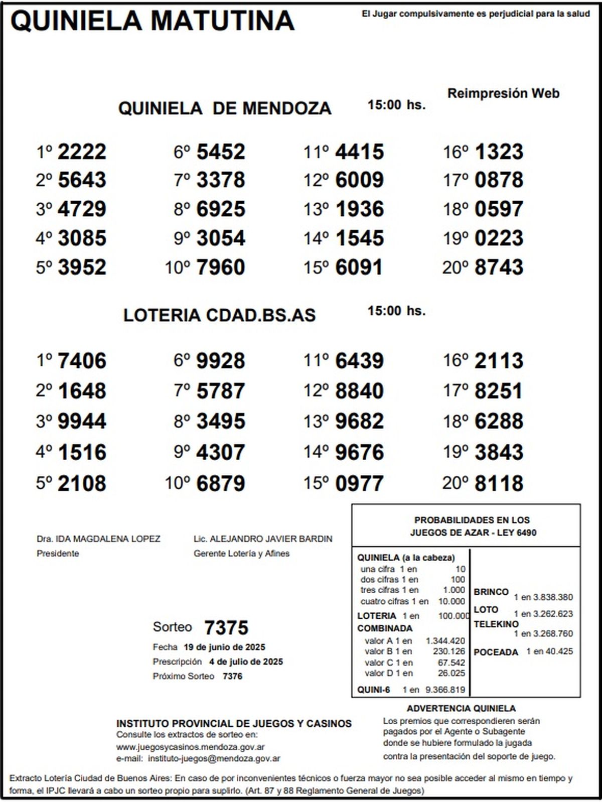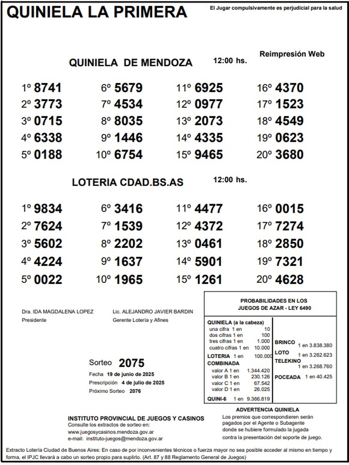 Resultados Quiniela de Mendoza: La Previa del 19 de junio de 2025