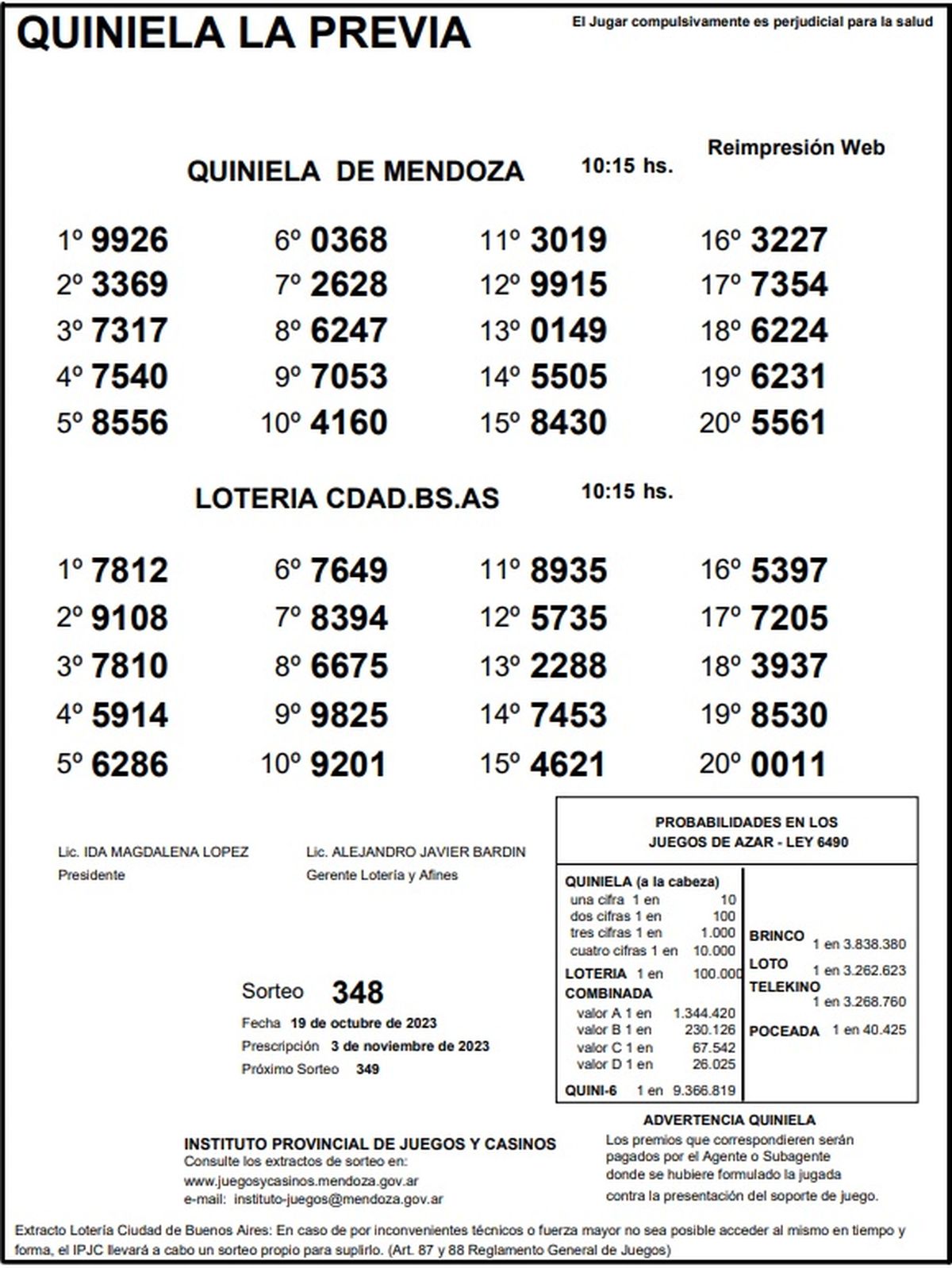 Resultados Quiniela de Mendoza: La Previa del 19 de octubre 2023