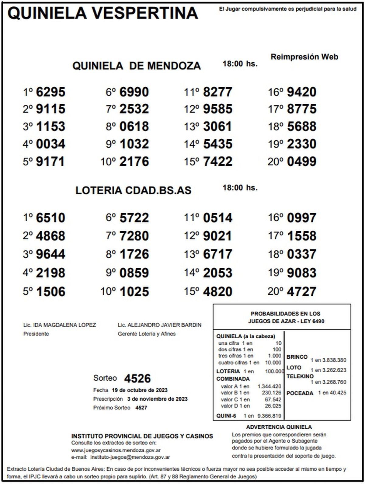 Resultados Quiniela de Mendoza: La Vespertina del 19 de octubre 2023