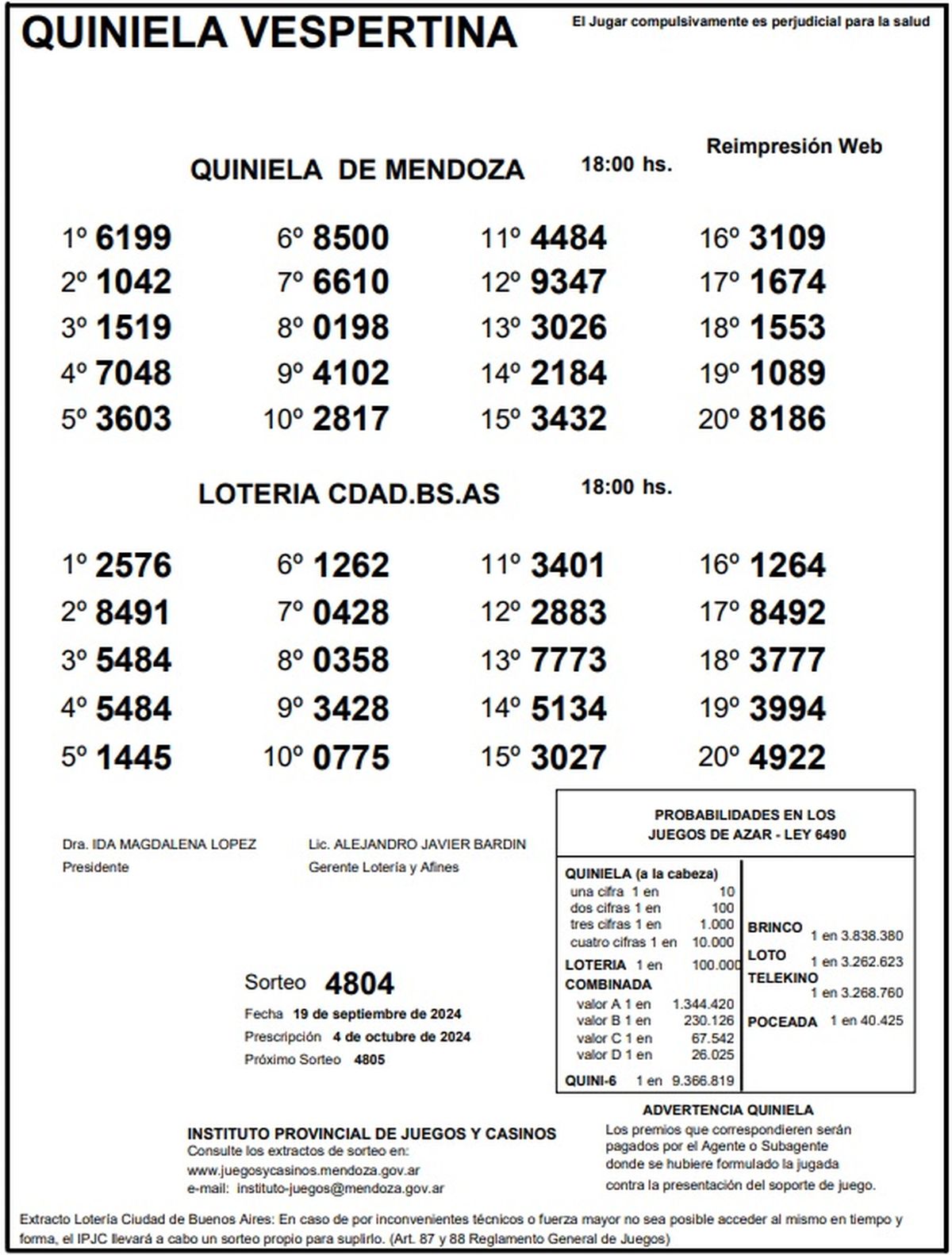 Resultados Quiniela de Mendoza: La Vespertina del 19 de septiembre 2024
