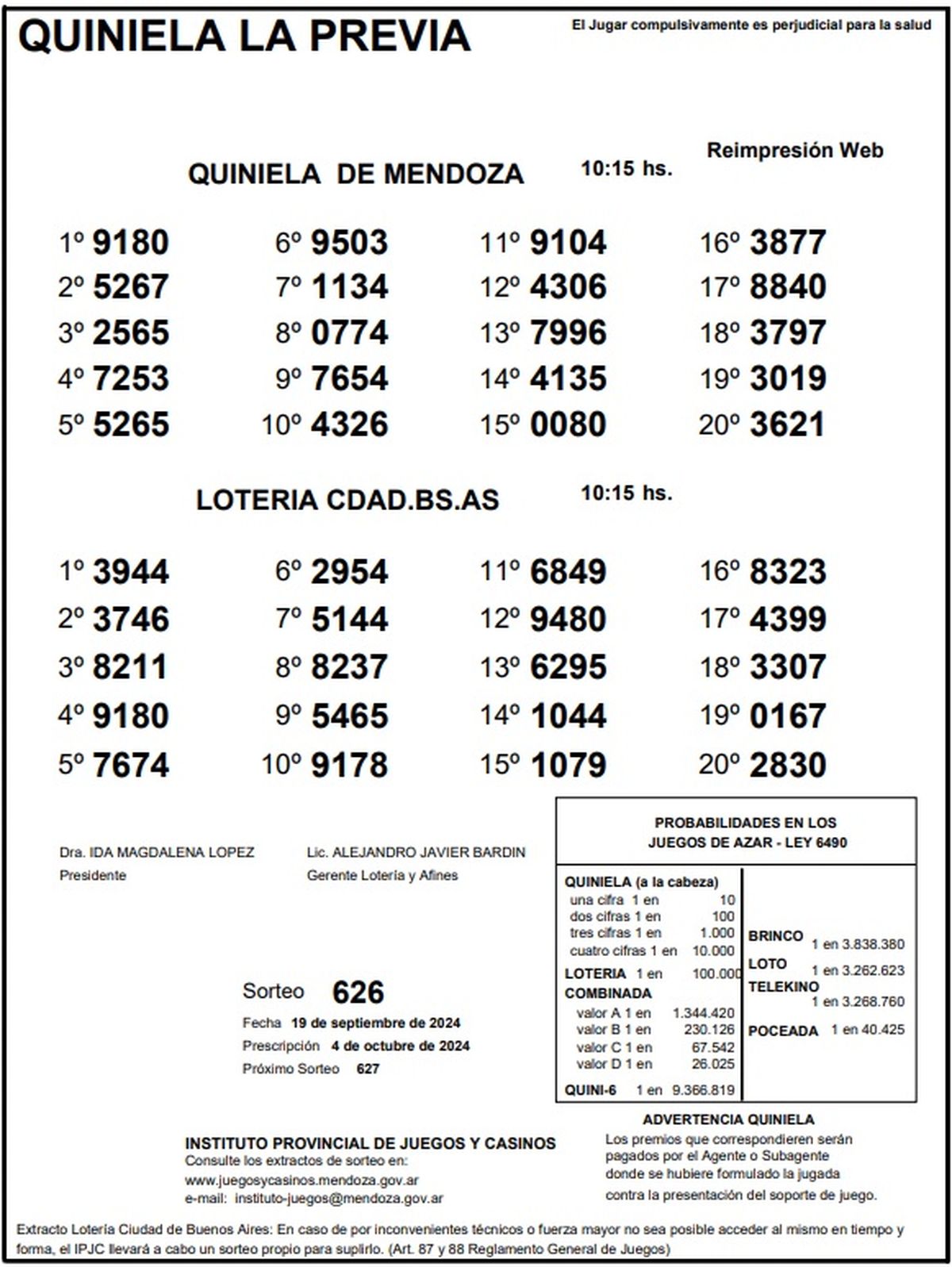 Resultados Quiniela de Mendoza: La Previa del 19 de septiembre 2024