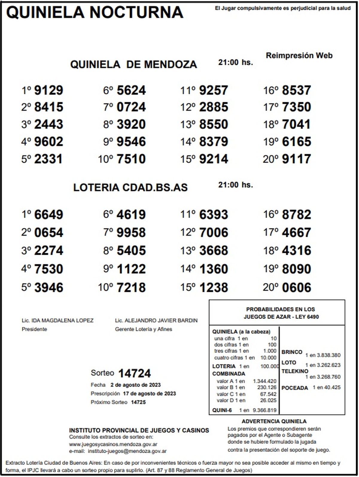 Quiniela de Mendoza: resultados de la Nocturna de hoy, 2 de agosto de 2023