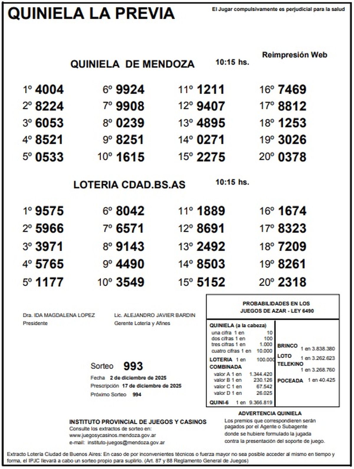 Resultados Quiniela de Mendoza: La Previa del 2 de diciembre de 2025