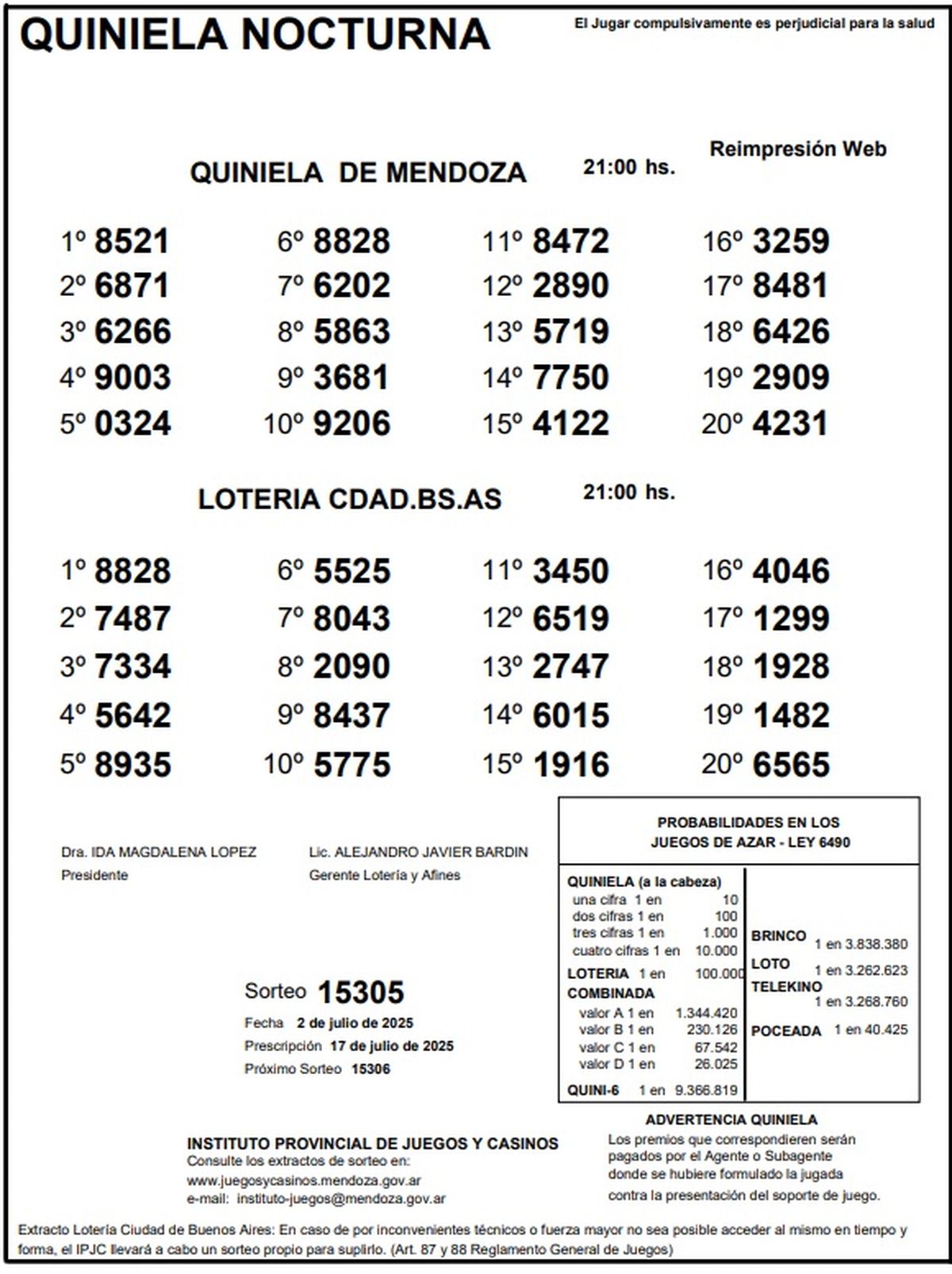 Quiniela de Mendoza: resultados de la Nocturna de hoy, 2 de julio de 2025