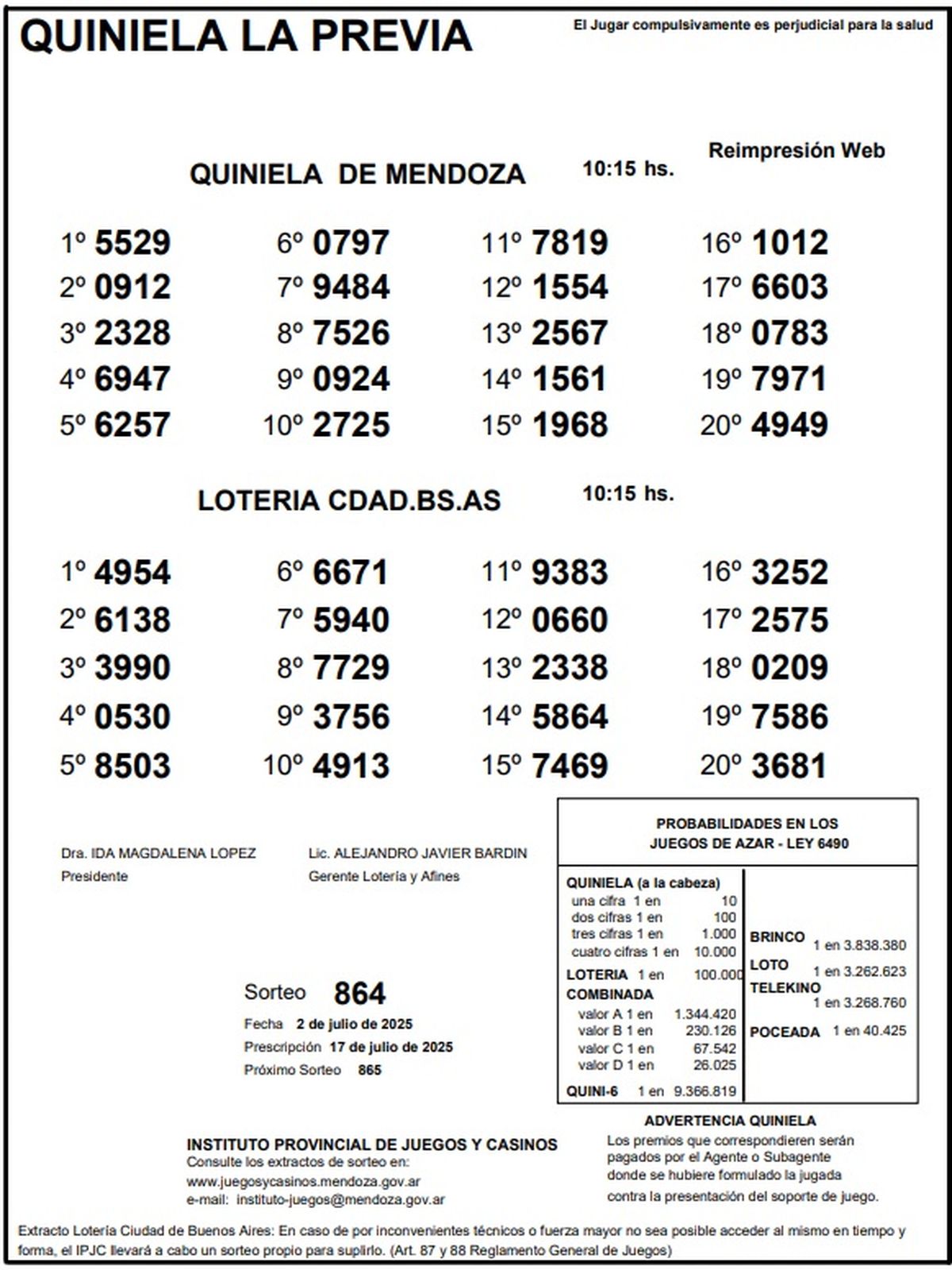 Resultados Quiniela de Mendoza: La Previa del 2 de julio de 2025