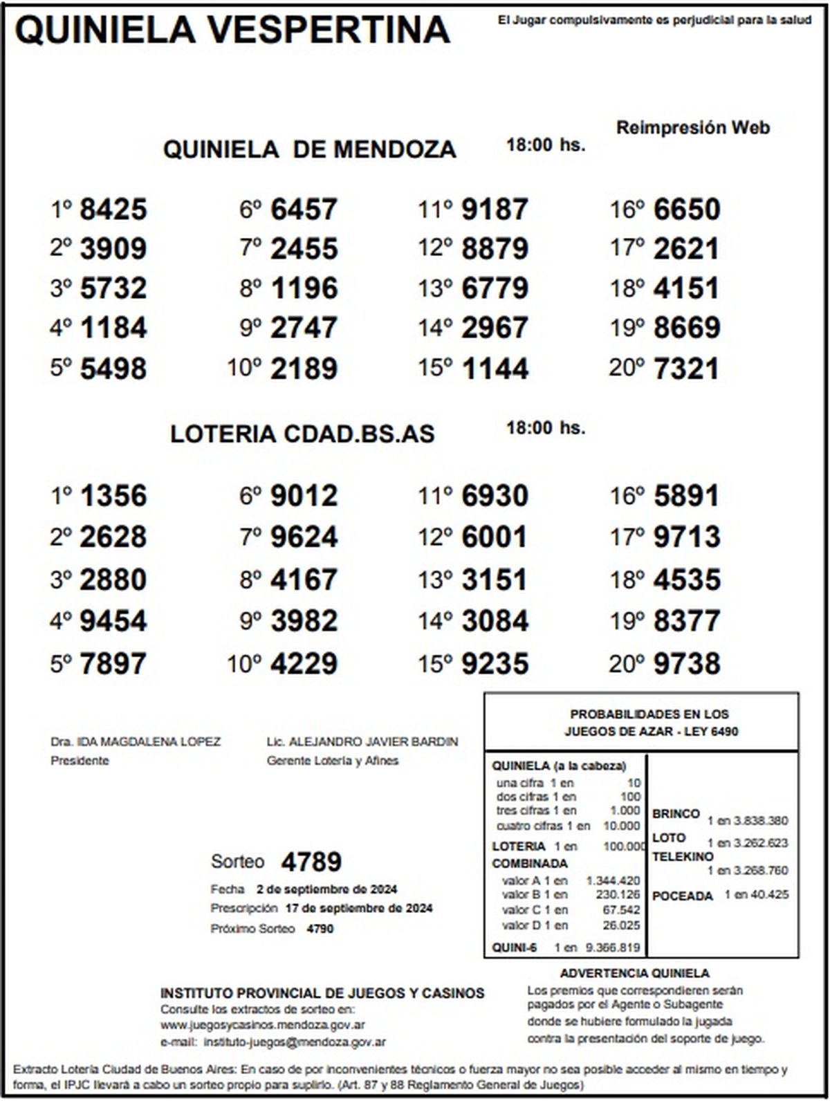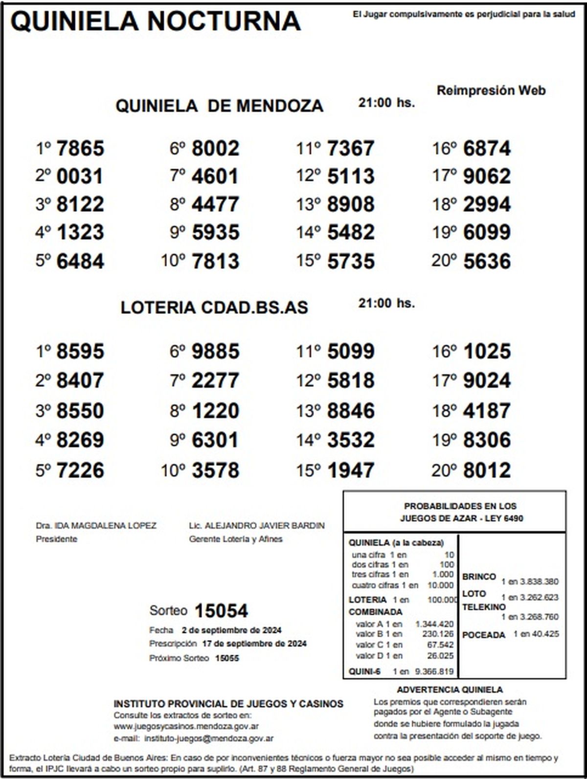 Quiniela de Mendoza: resultados de la Nocturna de hoy, 2 de setiembre