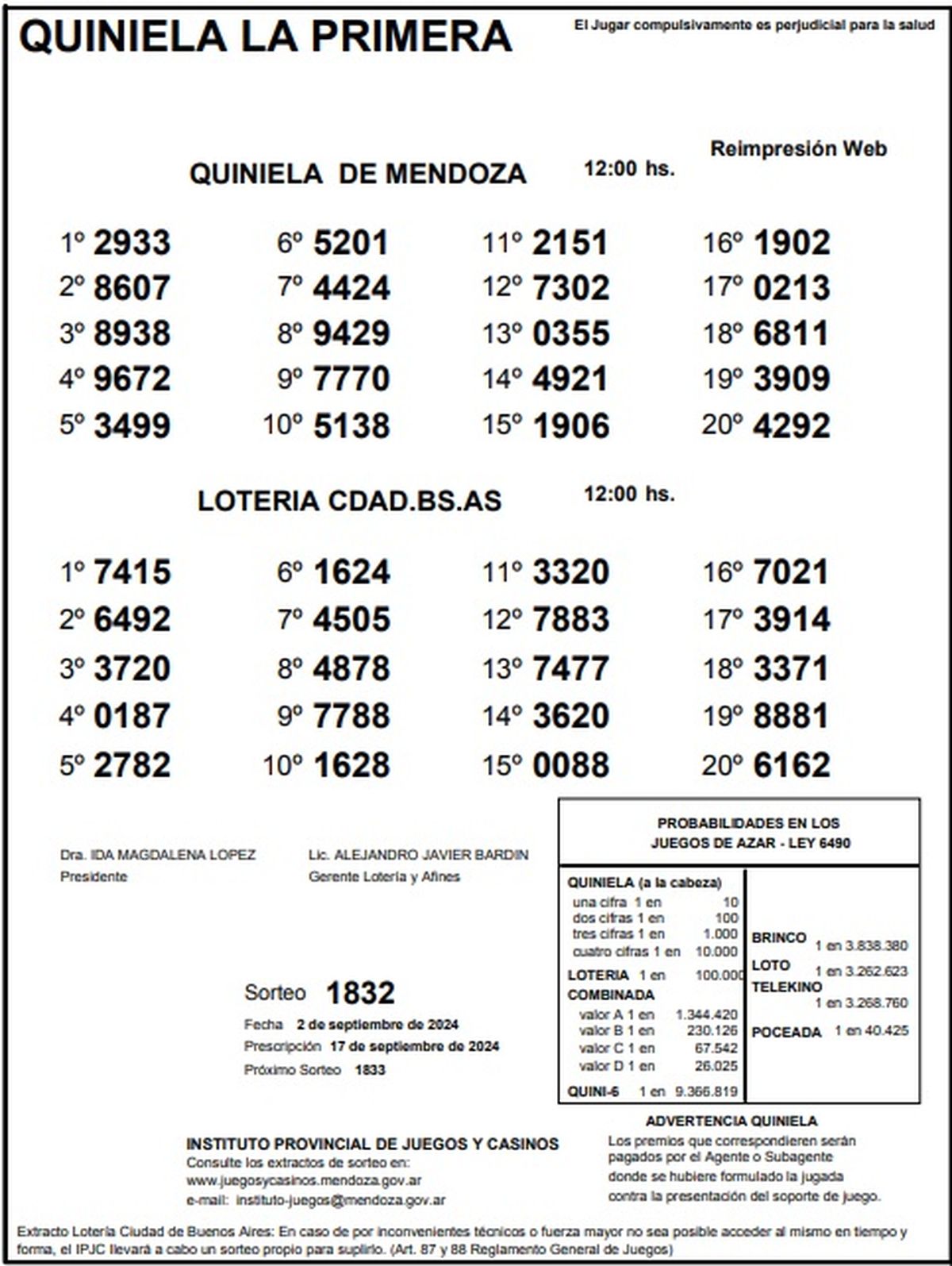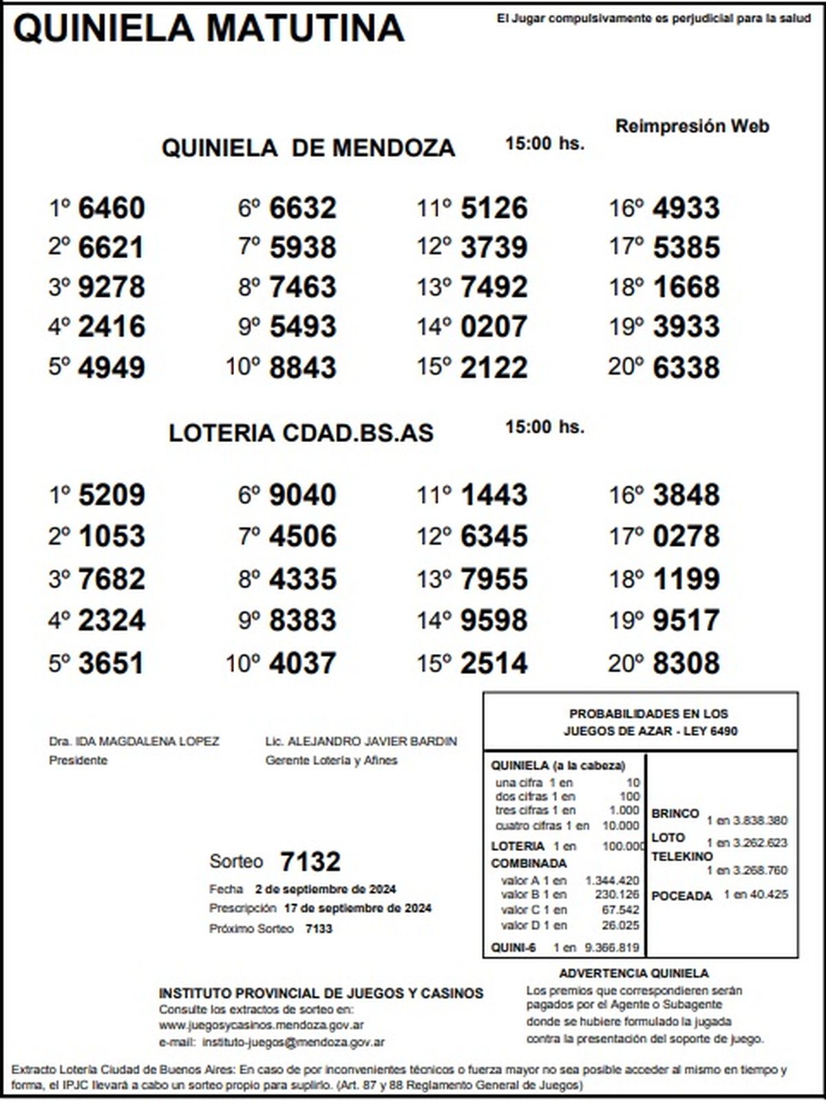 Resultados Quiniela de Mendoza: La Primera del 2 de setiembre 2024