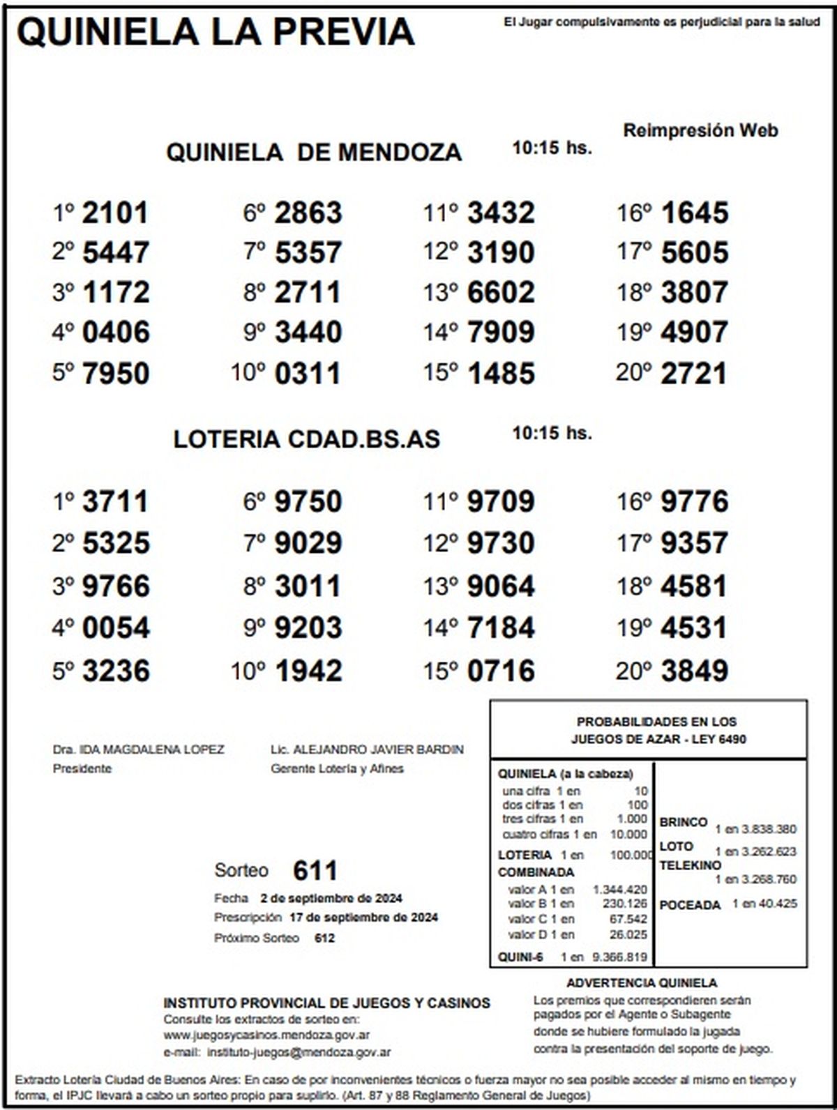 Resultados Quiniela de Mendoza: La Previa del 2 de setiembre 2024