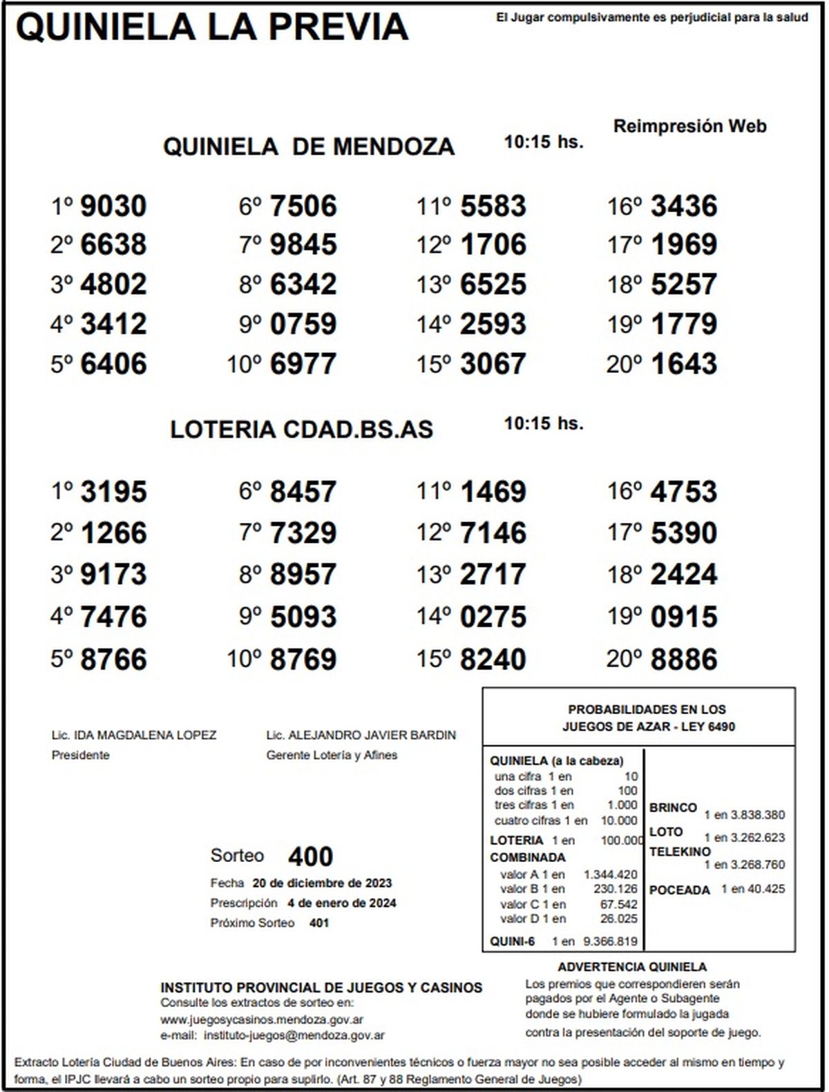 Resultados Quiniela de Mendoza: La Previa del 20 de diciembre 2023