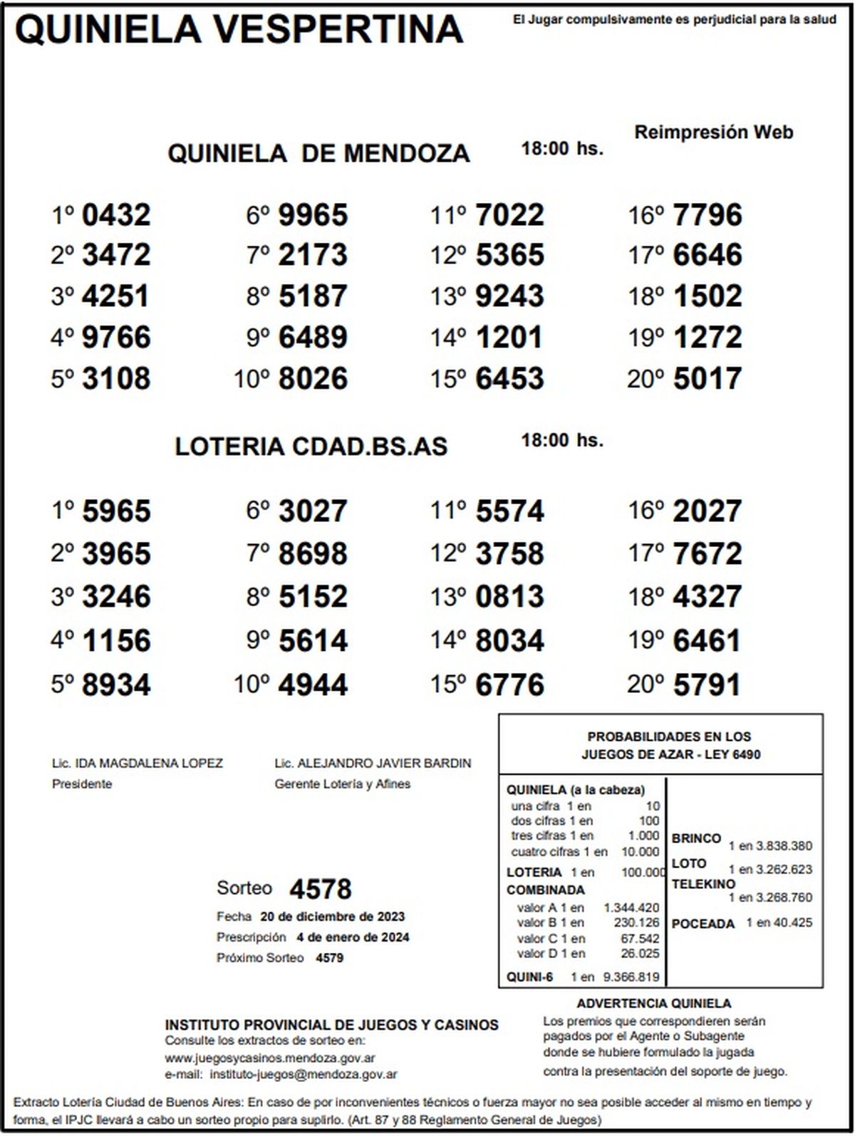Resultados Quiniela de Mendoza: La Vespertina del 20 de diciembre 2023