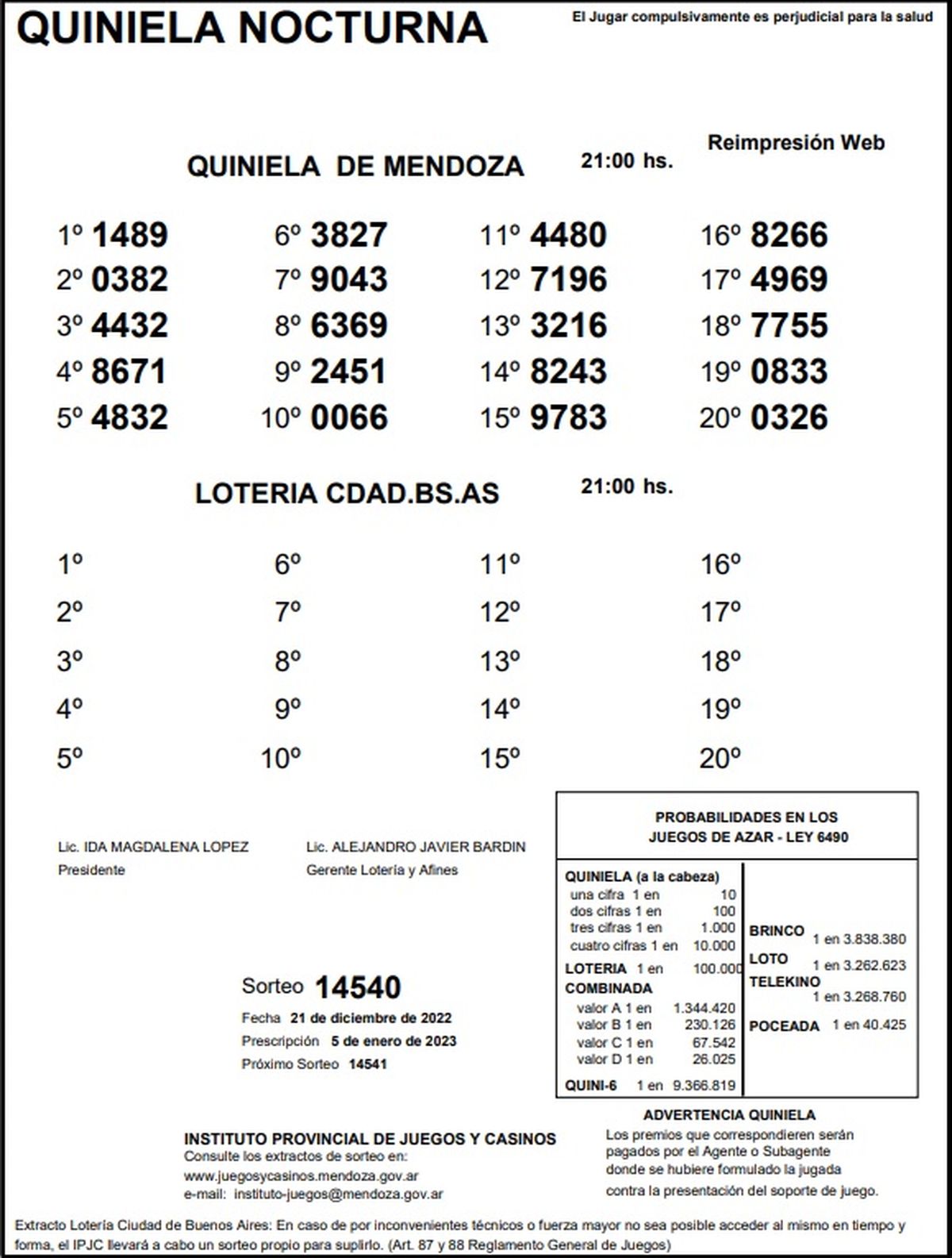 Quiniela de Mendoza: resultados de la Nocturna de hoy, 21 de diciembre de 2022