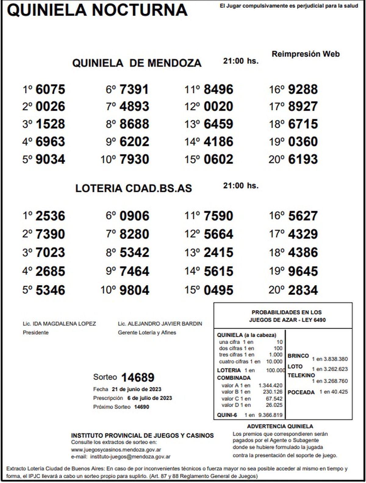 Quiniela de Mendoza: resultados de la Nocturna de hoy, 21 de junio de 2023