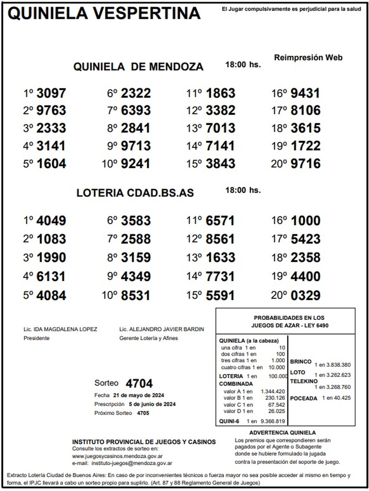 Quiniela de Mendoza: resultados de la Nocturna de hoy, 21 de mayo