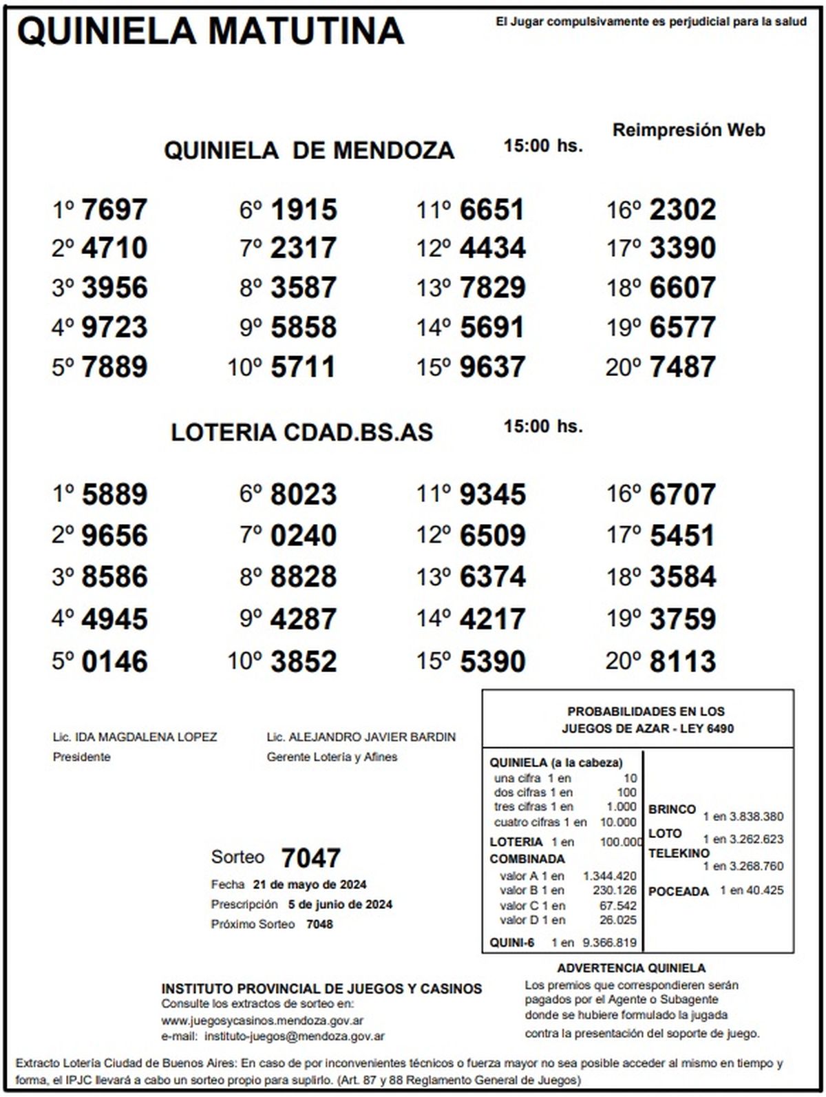 Resultados Quiniela de Mendoza: La Matutina del 21 de mayo 2024
