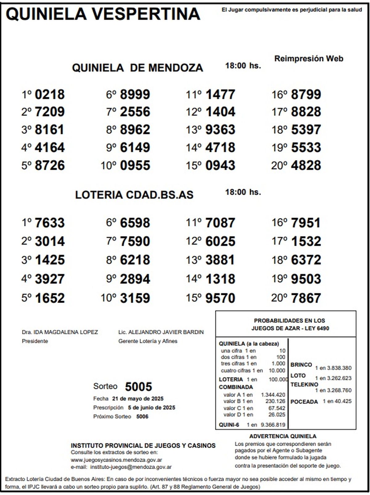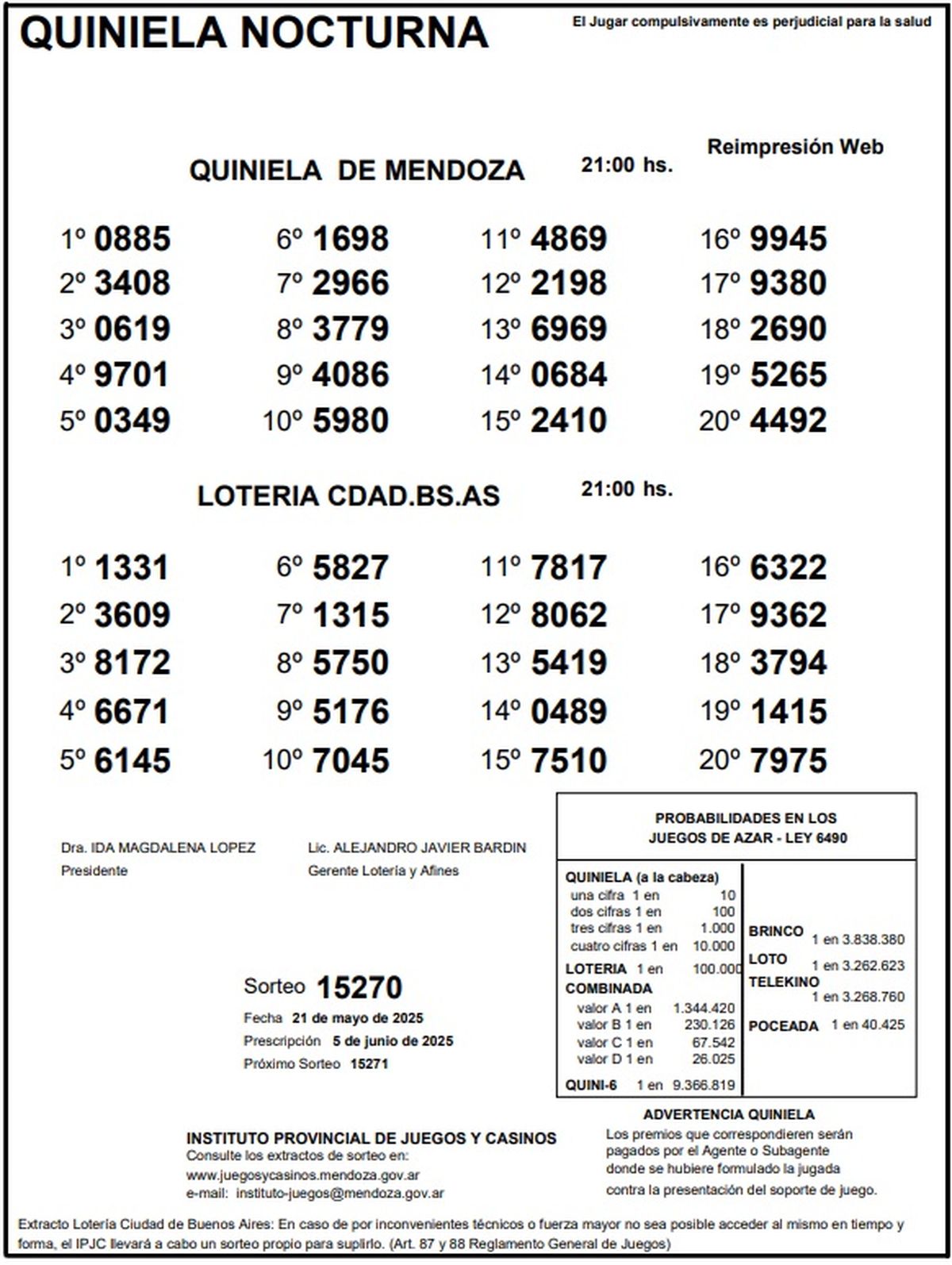 Resultados Quiniela de Mendoza: La Vespertina del 21 de mayo de 2025