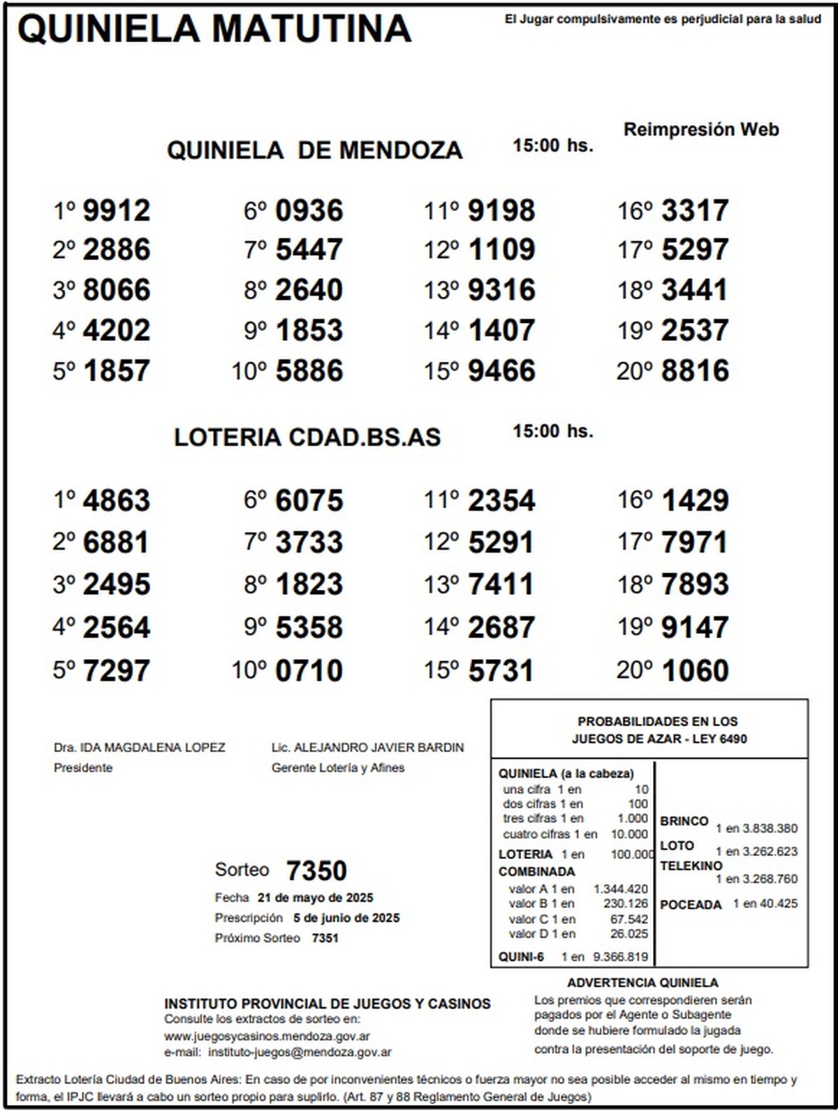 Resultados Quiniela de Mendoza: La Matutina del 21 de mayo de 2025