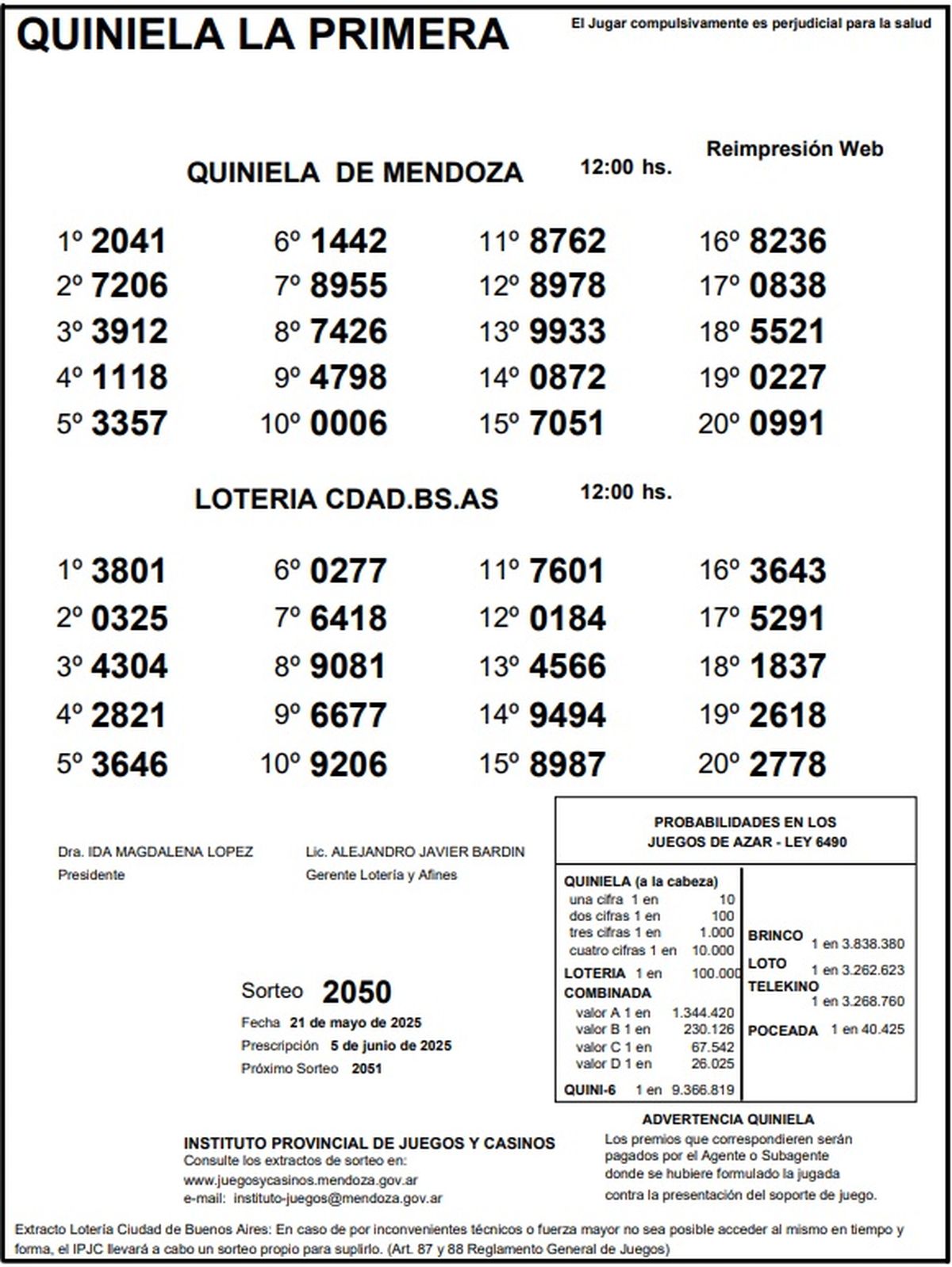 Resultados Quiniela de Mendoza: La Primera del 21 de mayo de 2025