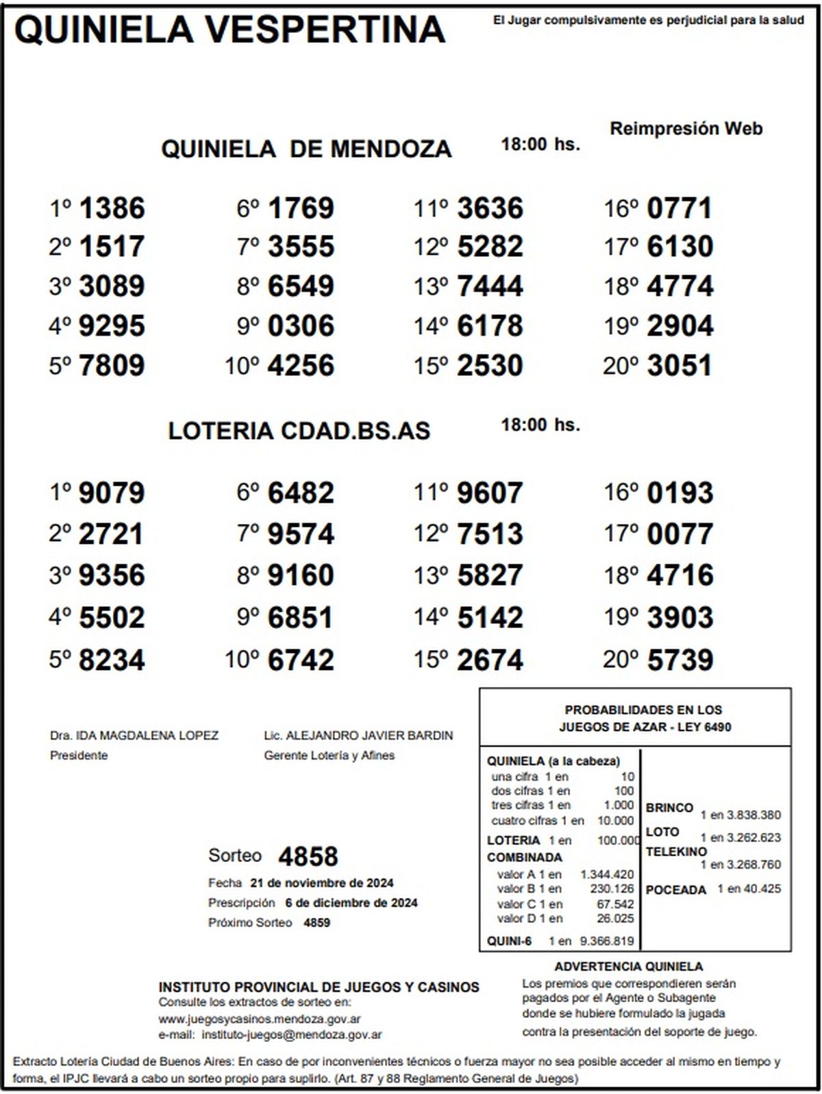 Resultados Quiniela de Mendoza: La Vespertina del 21 de noviembre de 2024