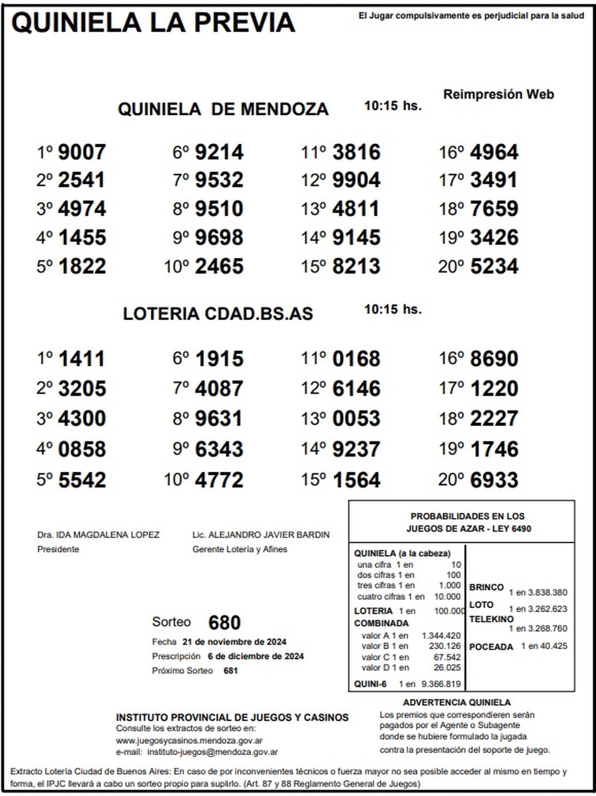 Resultados Quiniela de Mendoza: La Previa del 21 de noviembre de 2024