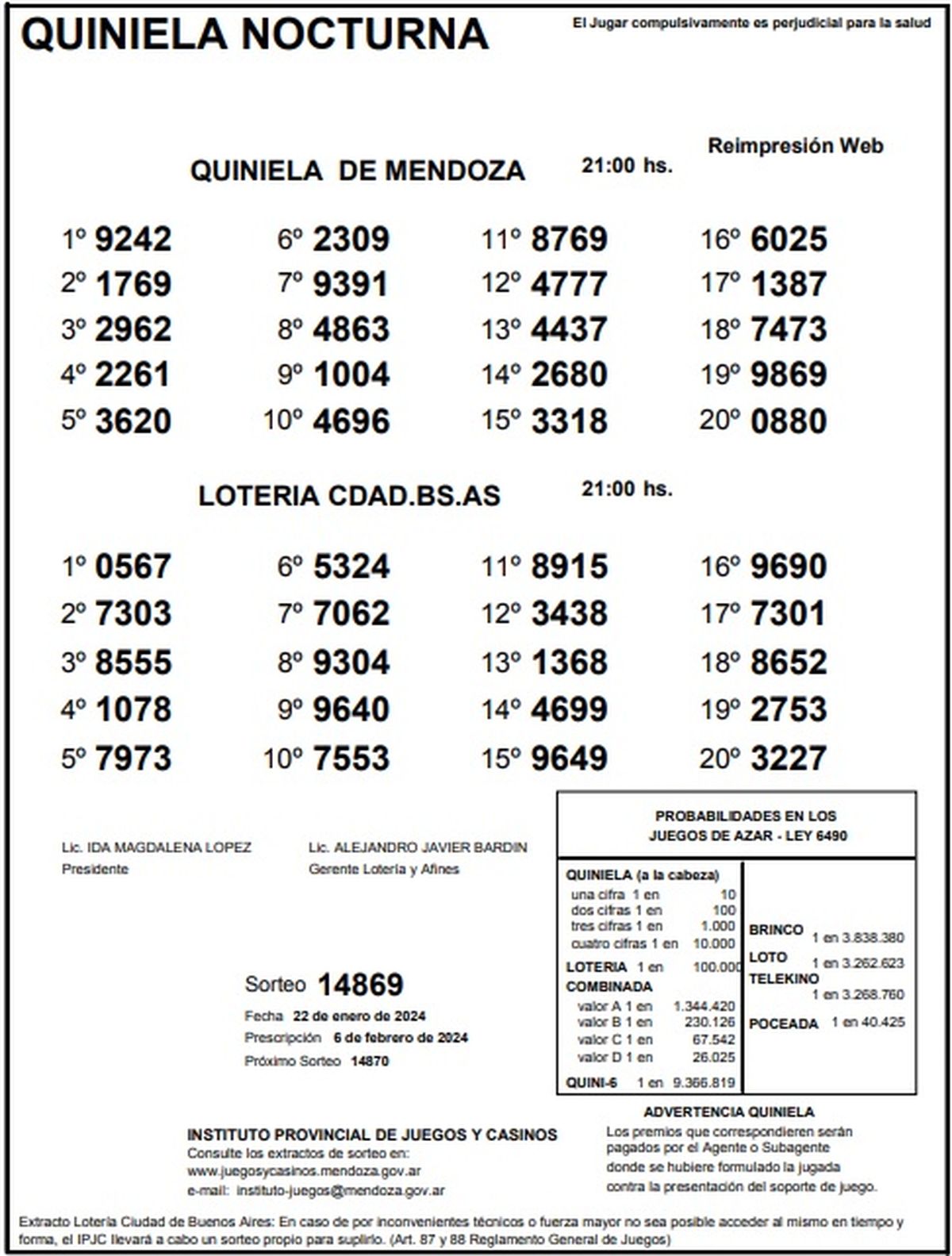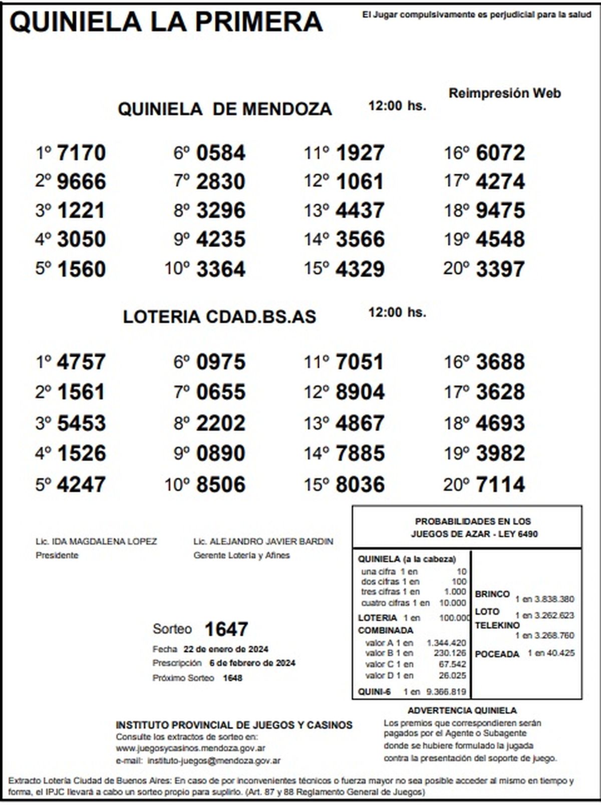 Resultados Quiniela de Mendoza: La Previa del 22 de enero 2024