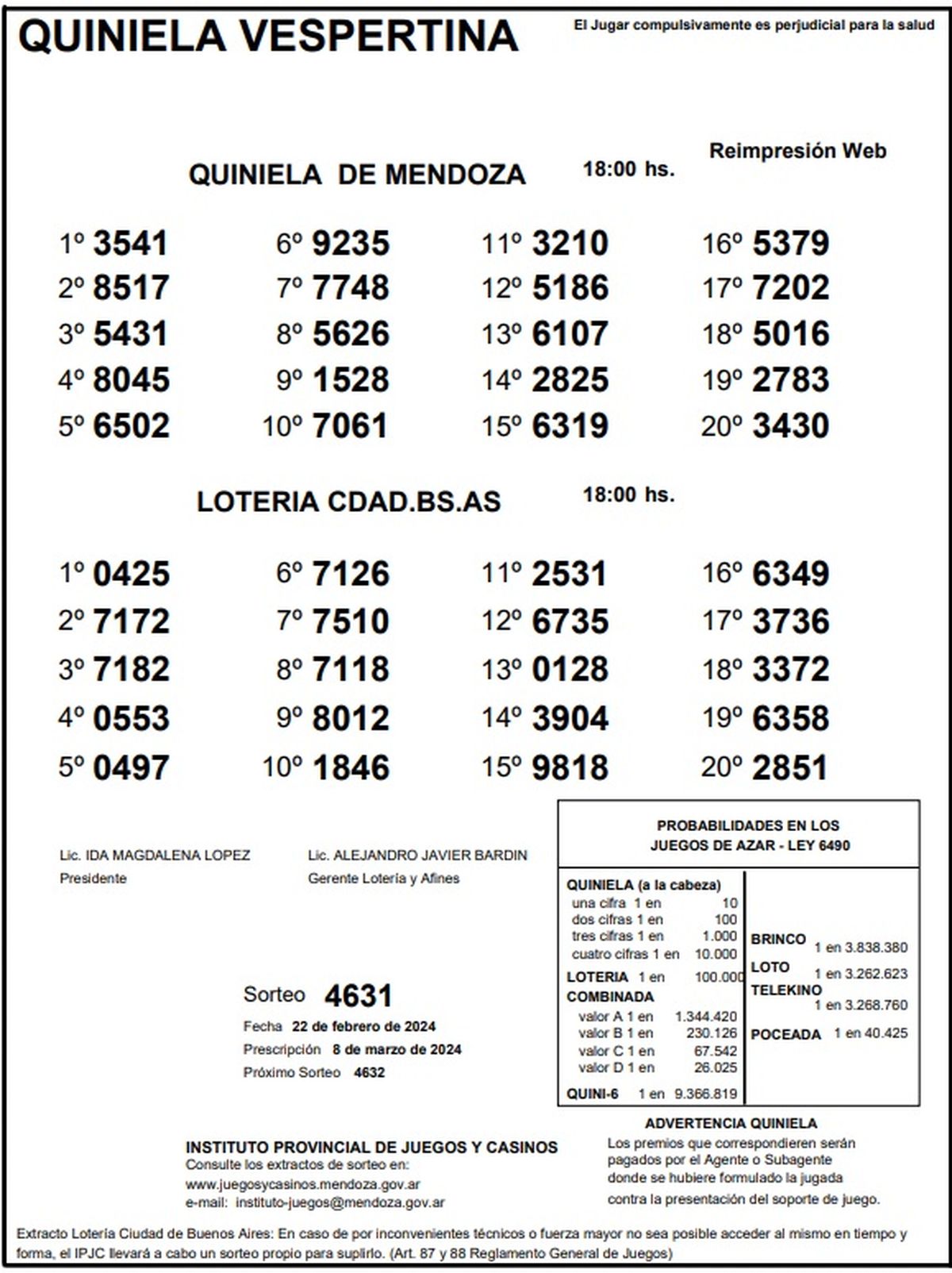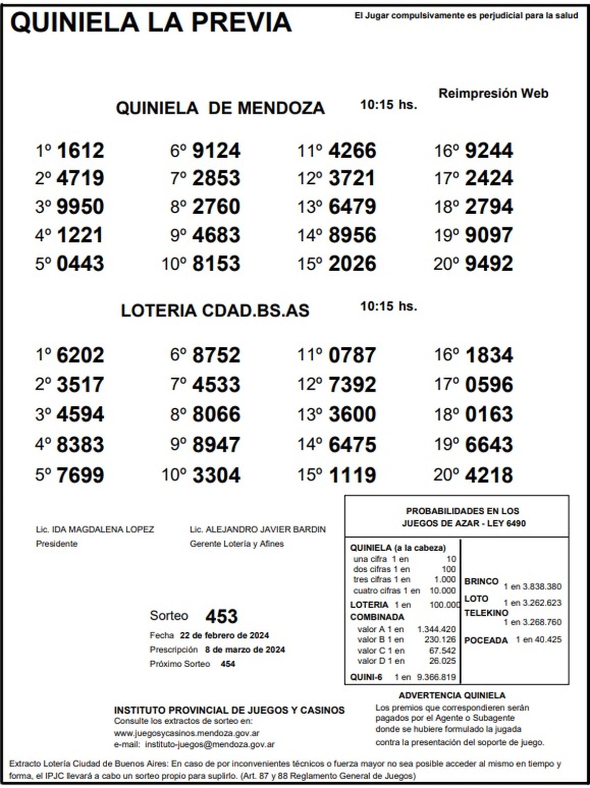 Resultados Quiniela de Mendoza: La Previa del 22 de febrero 2024
