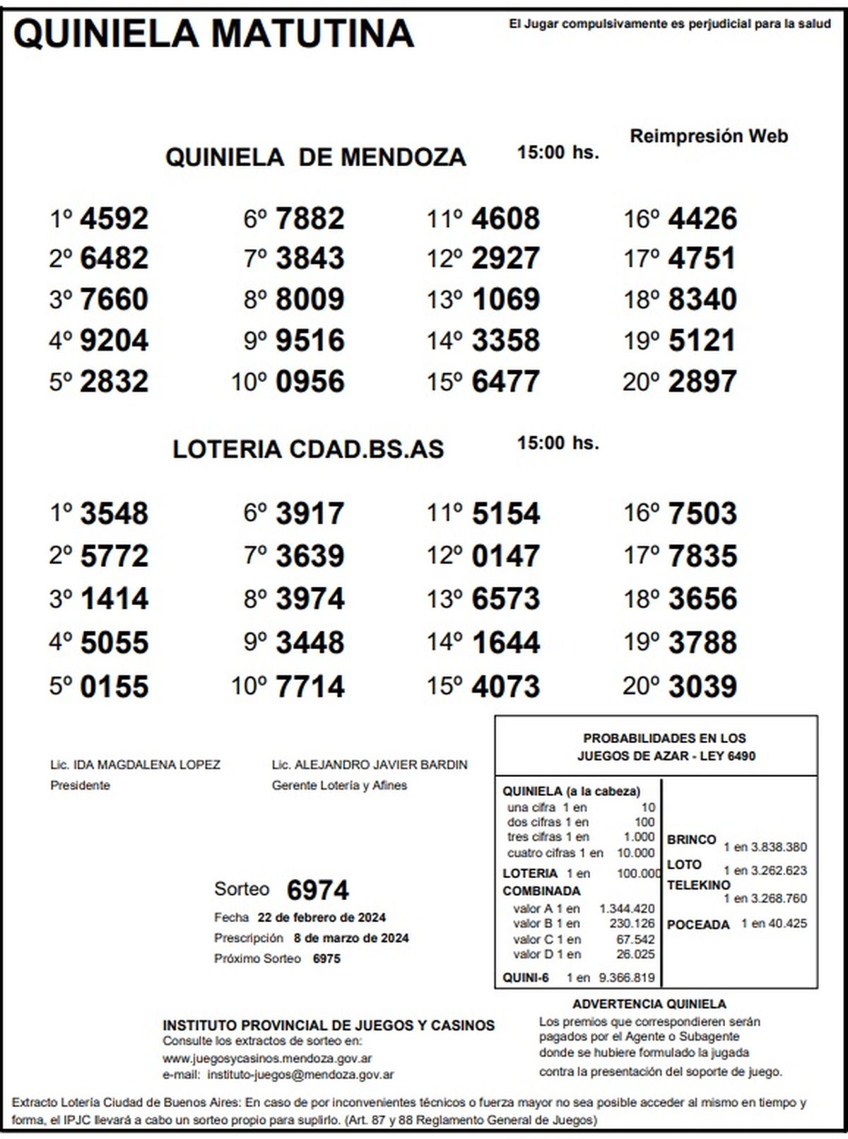 Resultados Quiniela de Mendoza: La Matutina del 22 de febrero 2024