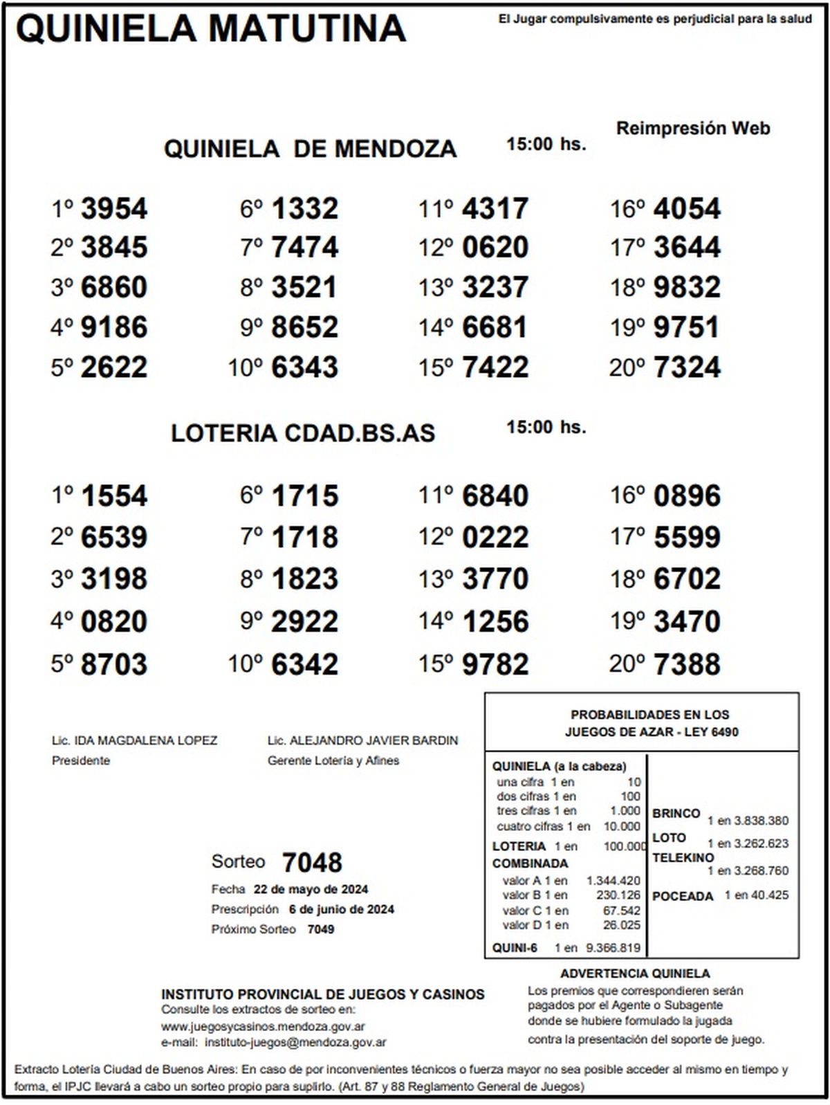 Resultados Quiniela de Mendoza: La Matutina del 22 de mayo 2024