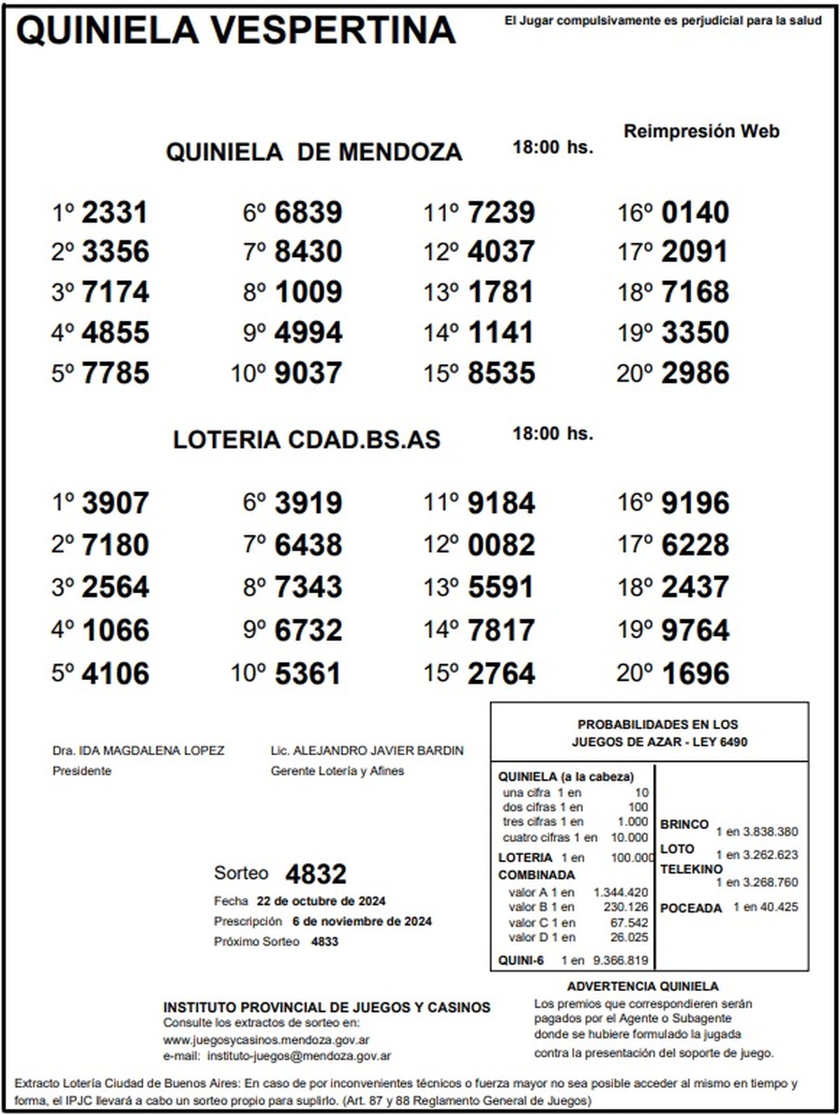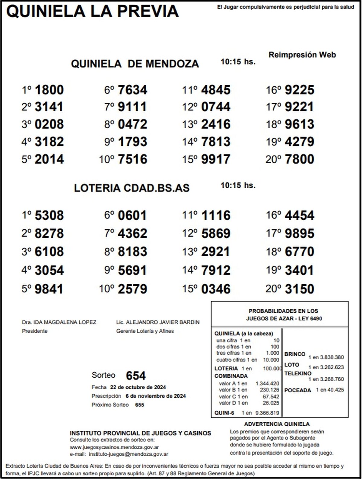 Resultados Quiniela de Mendoza: La Previa del 22 de octubre 2024