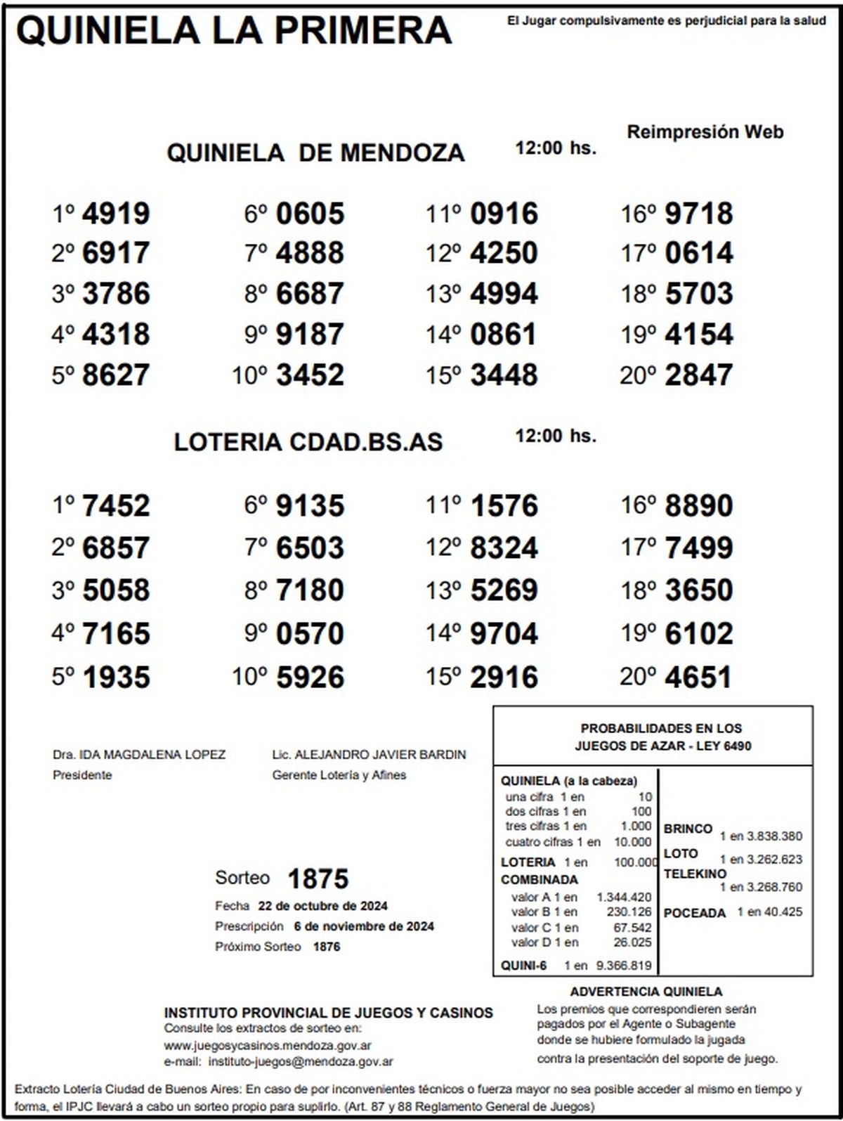 Resultados Quiniela de Mendoza: La Primera del 22 de octubre 2024