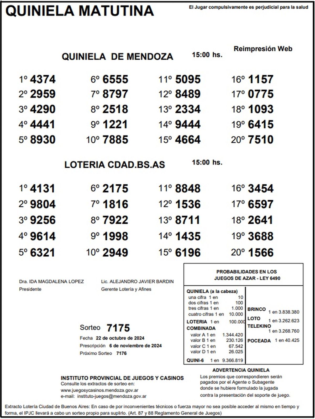Resultados Quiniela de Mendoza: La Matutina del 22 de octubre 2024