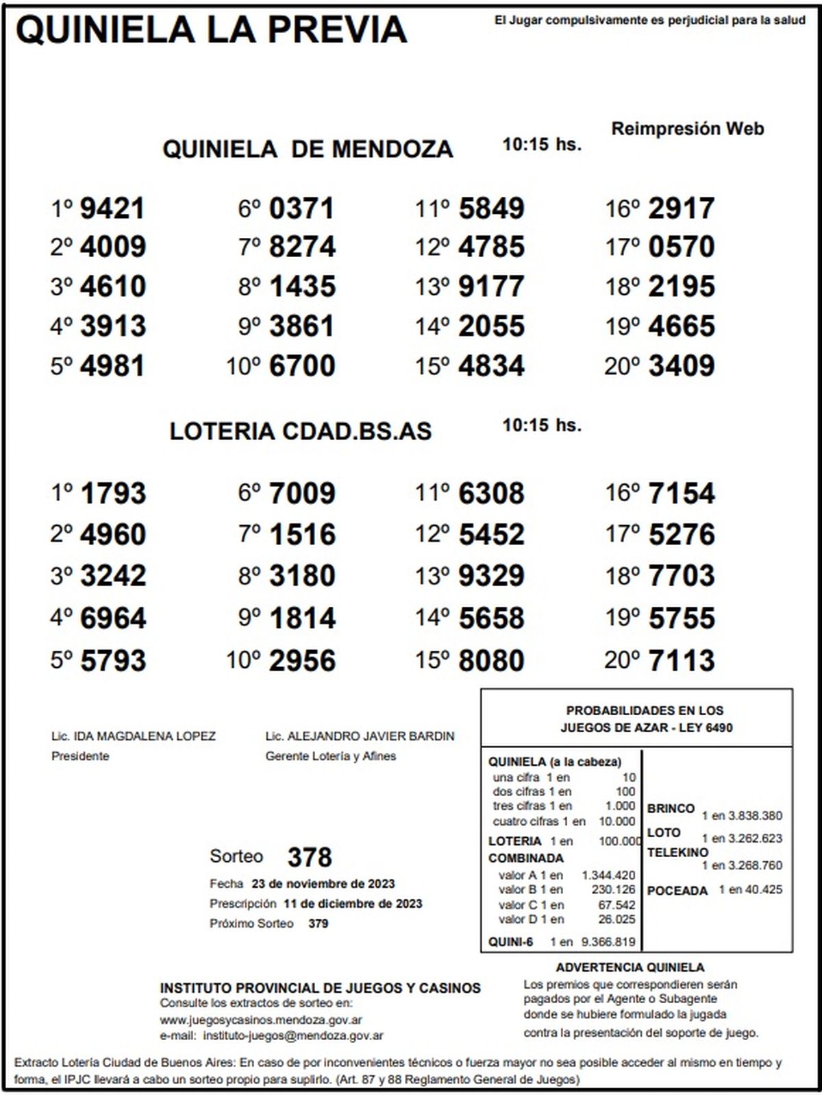 Resultados Quiniela de Mendoza: La Previa del 23 de noviembre 2023