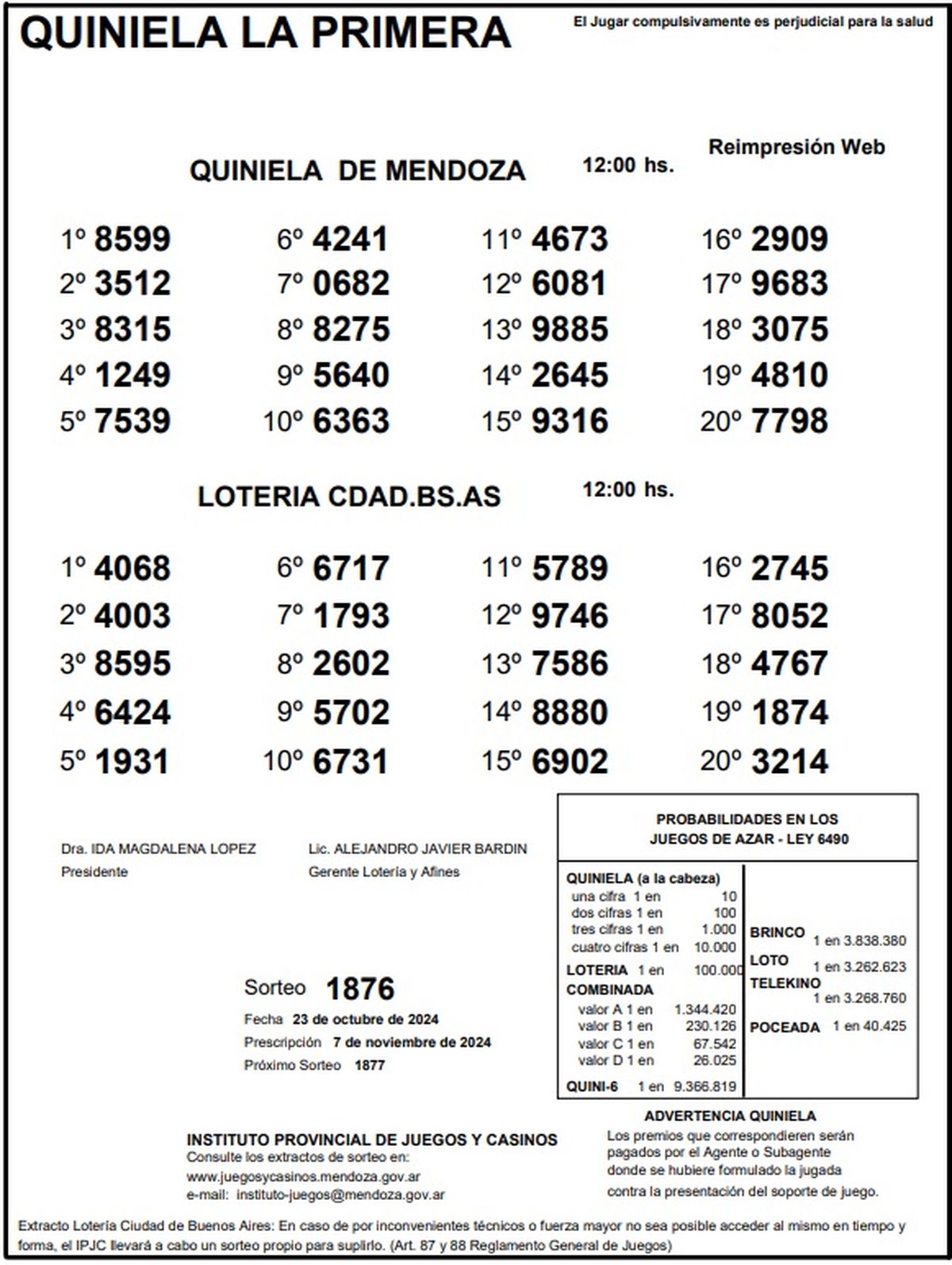 Resultados Quiniela de Mendoza: La Primera del 23 de octubre 2024
