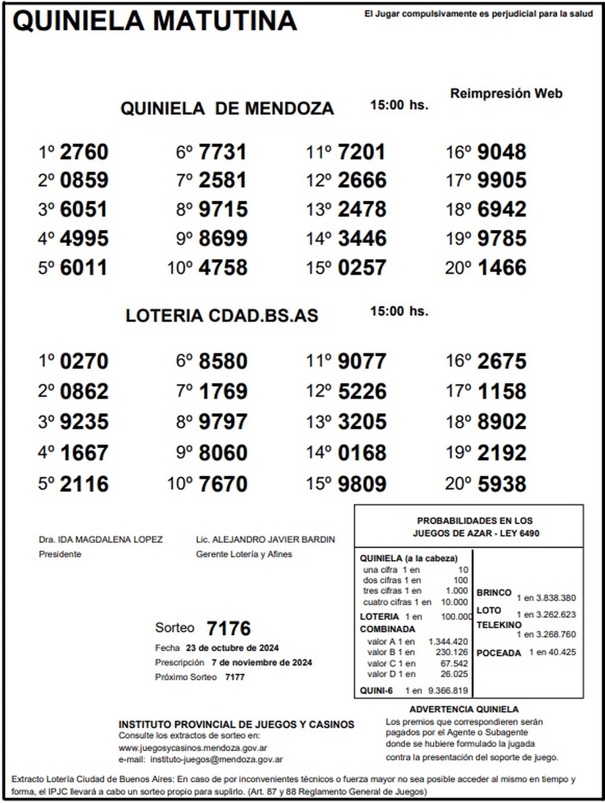 Resultados Quiniela de Mendoza: La Matutina del 23 de octubre 2024