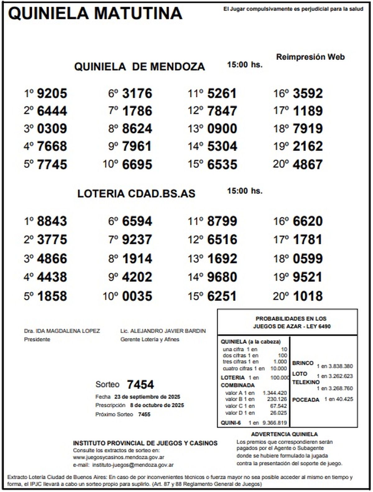 Resultados Quiniela de Mendoza: La Matutina del 23 de septiembre de 2025