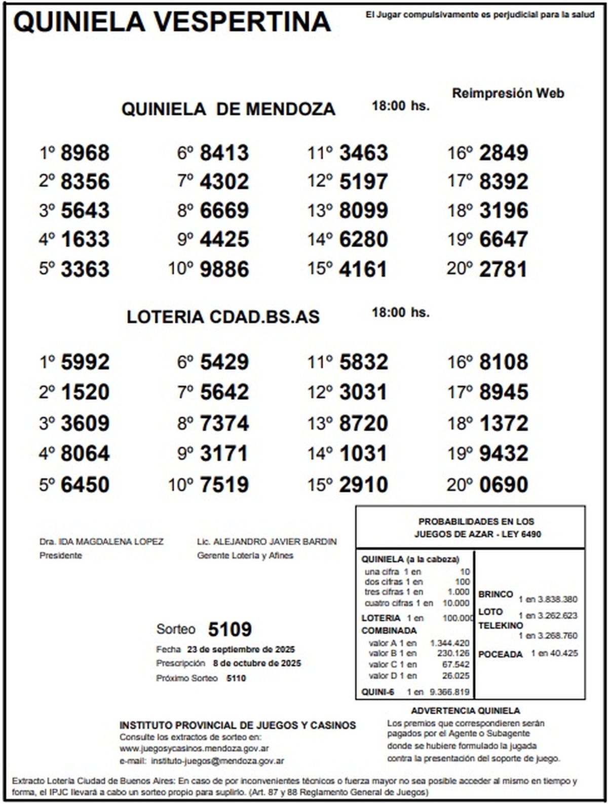 Resultados Quiniela de Mendoza: La Vespertina del 23 de septiembre de 2025