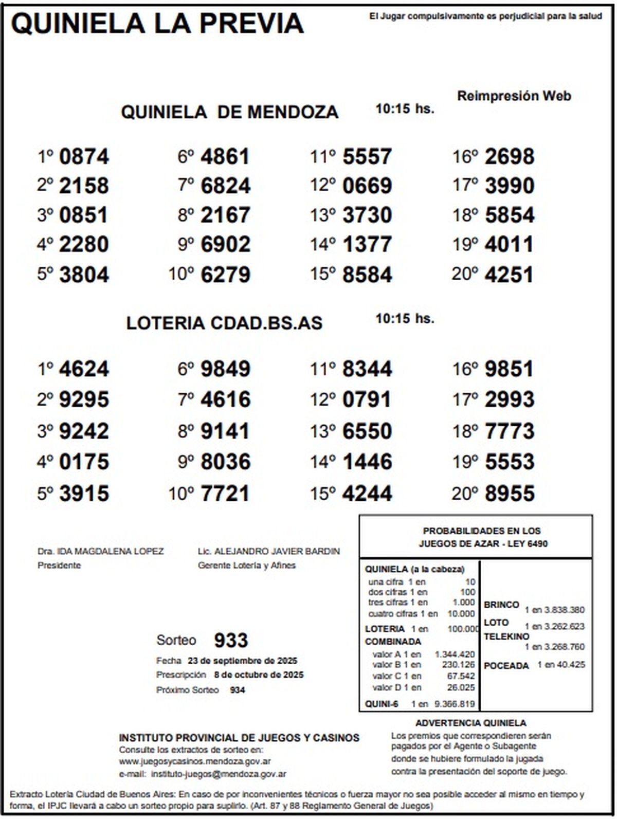 Resultados Quiniela de Mendoza: La Previa del 23 de septiembre de 2025