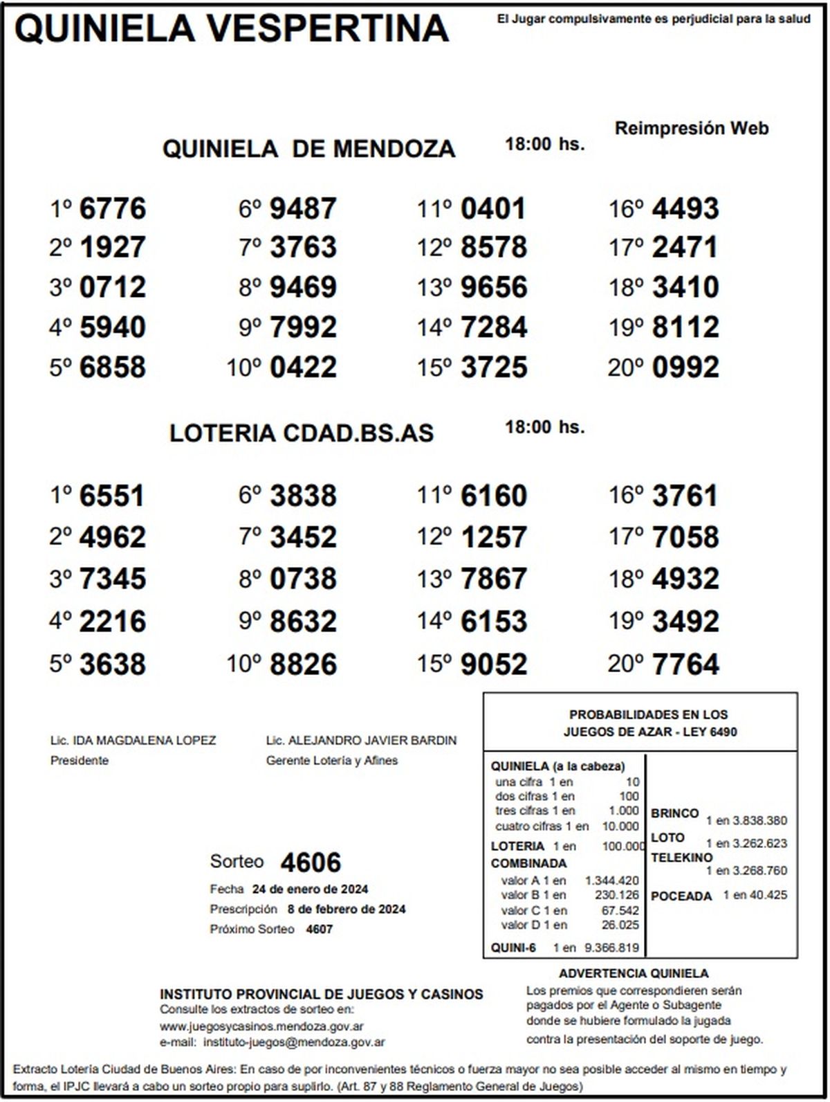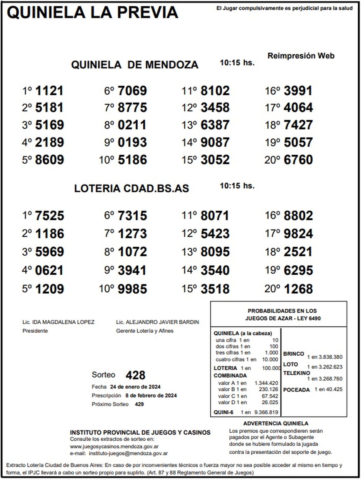 Resultados Quiniela de Mendoza: La Previa del 24 de enero 2024