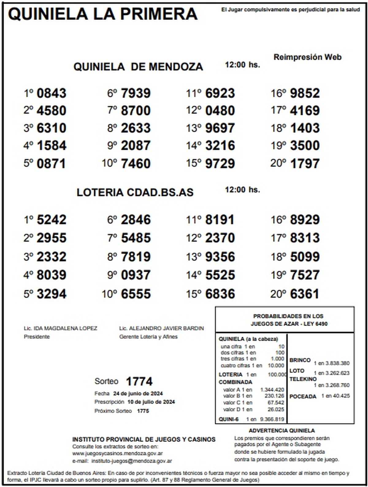 Resultados Quiniela de Mendoza: La Primera del 24 de junio 2024