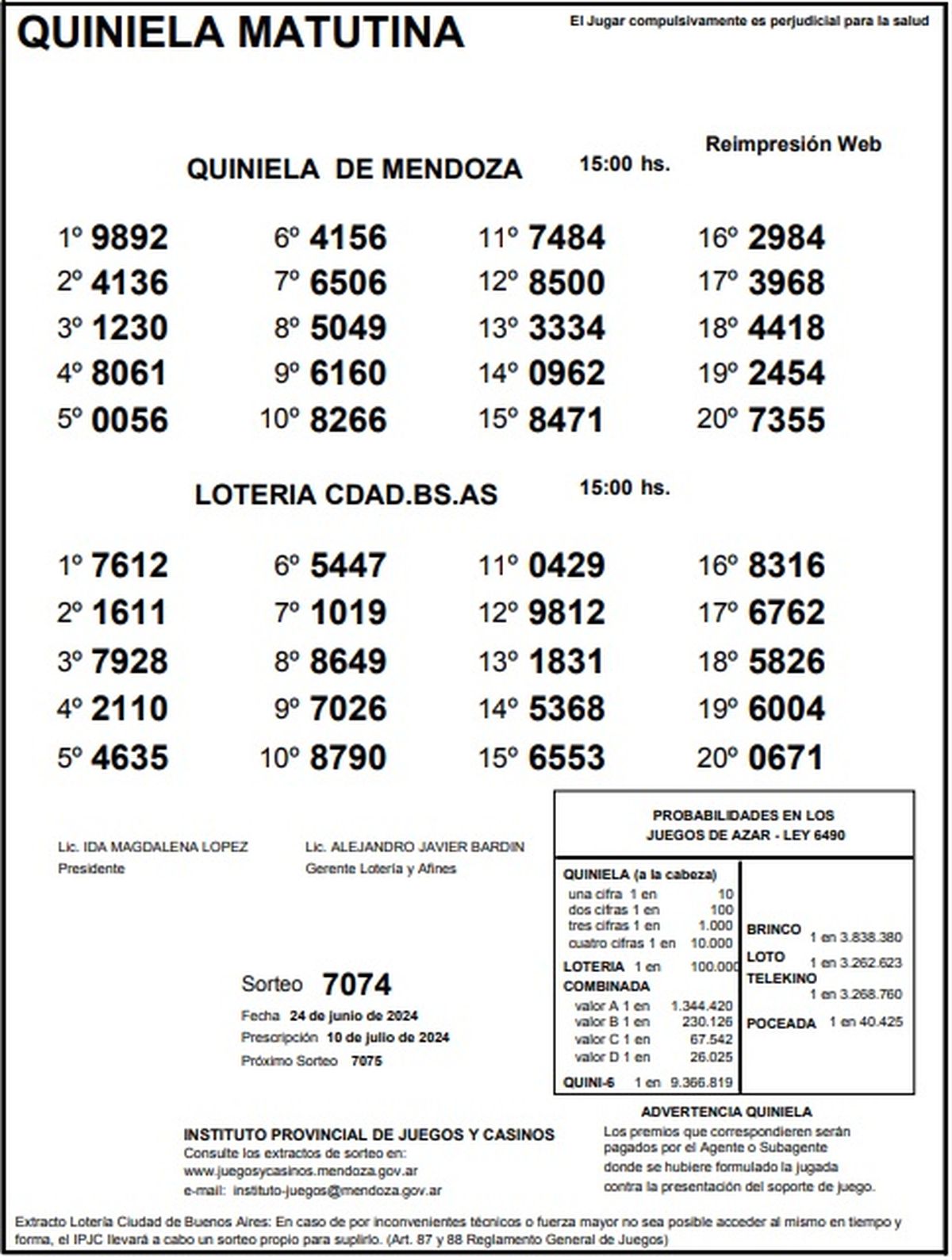Resultados Quiniela de Mendoza: La Matutina del 24 de junio 2024