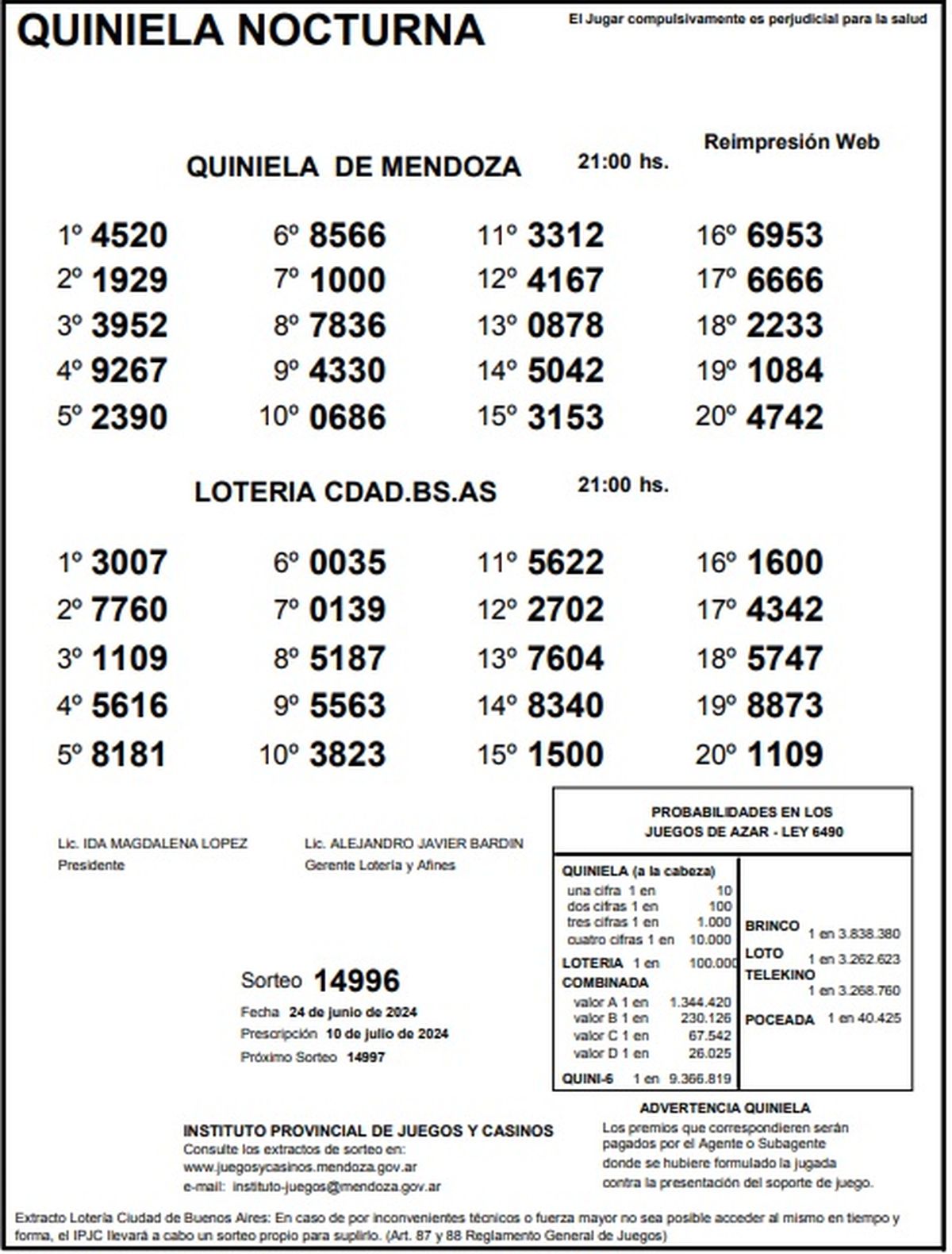 Quiniela de Mendoza: resultados de la Nocturna de hoy, 24 de junio