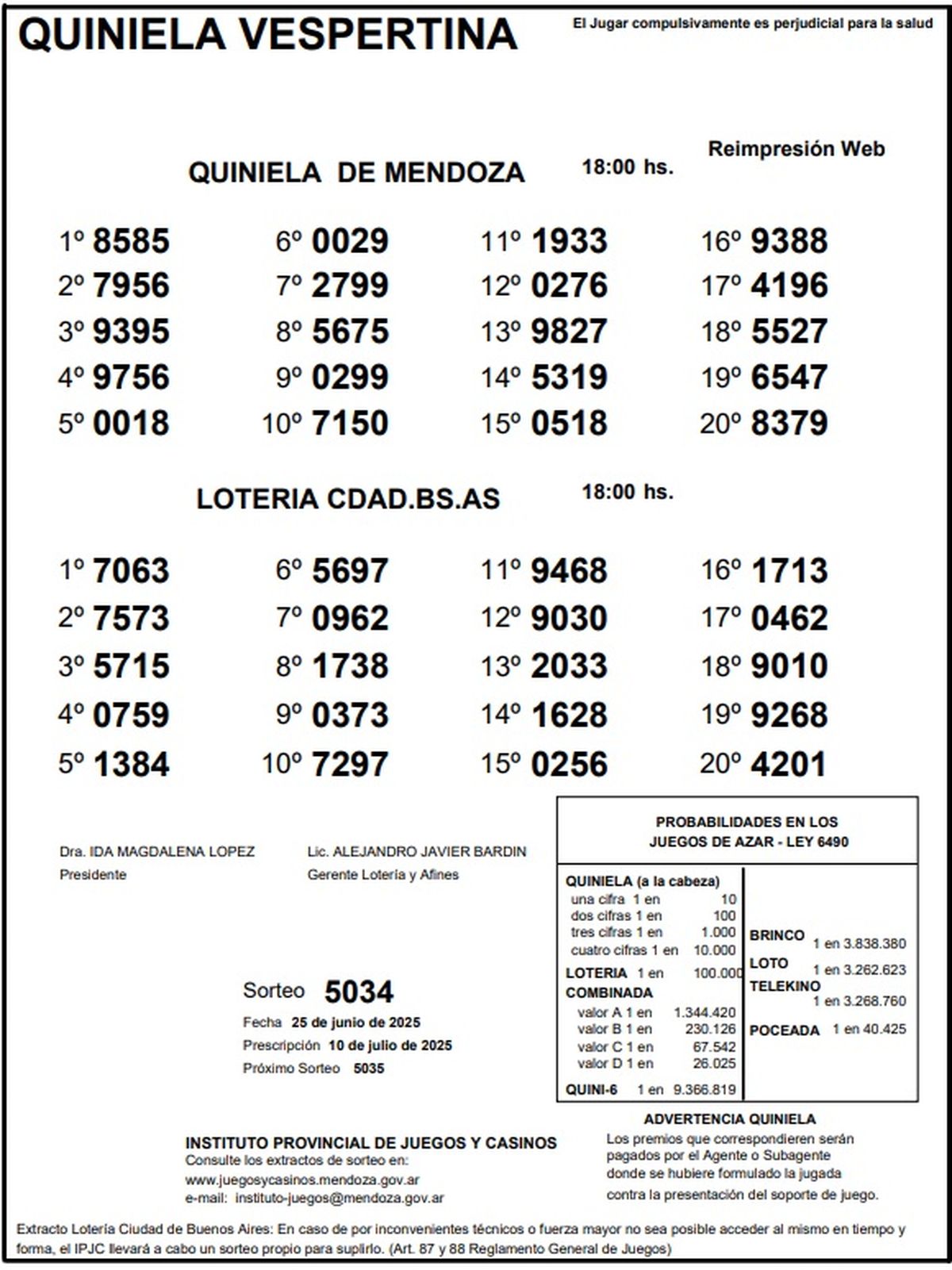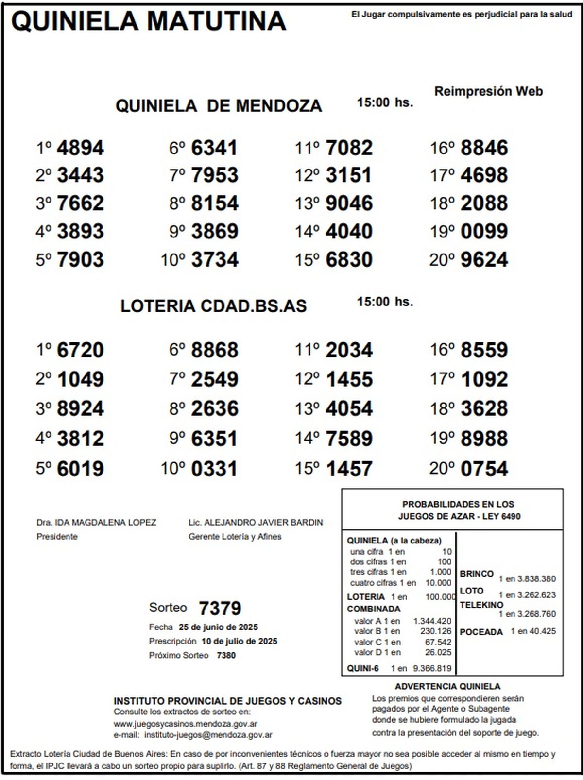 Resultados Quiniela de Mendoza: La Matutina del 25 de junio de 2025