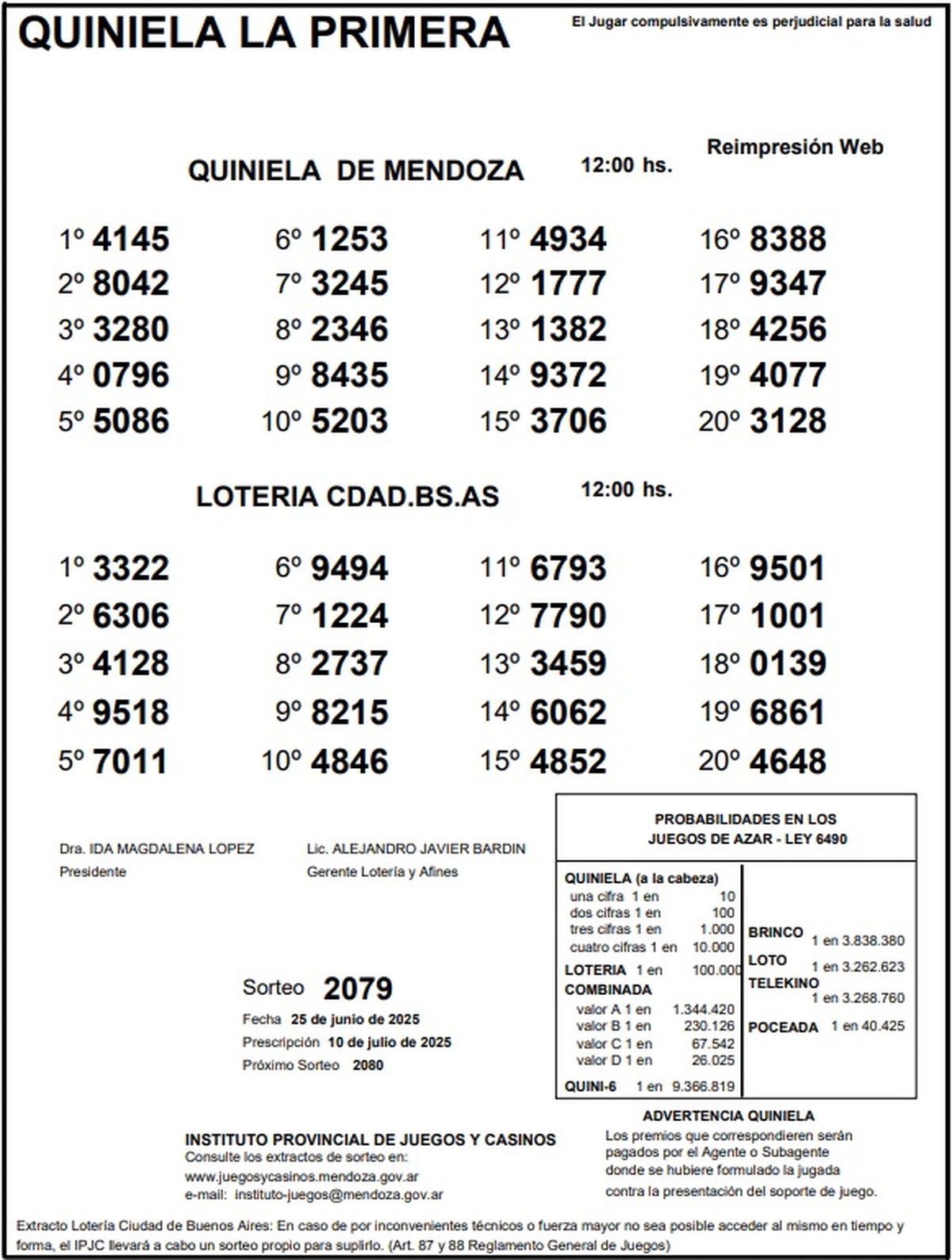 Resultados Quiniela de Mendoza: La Primera del 25 de junio de 2025