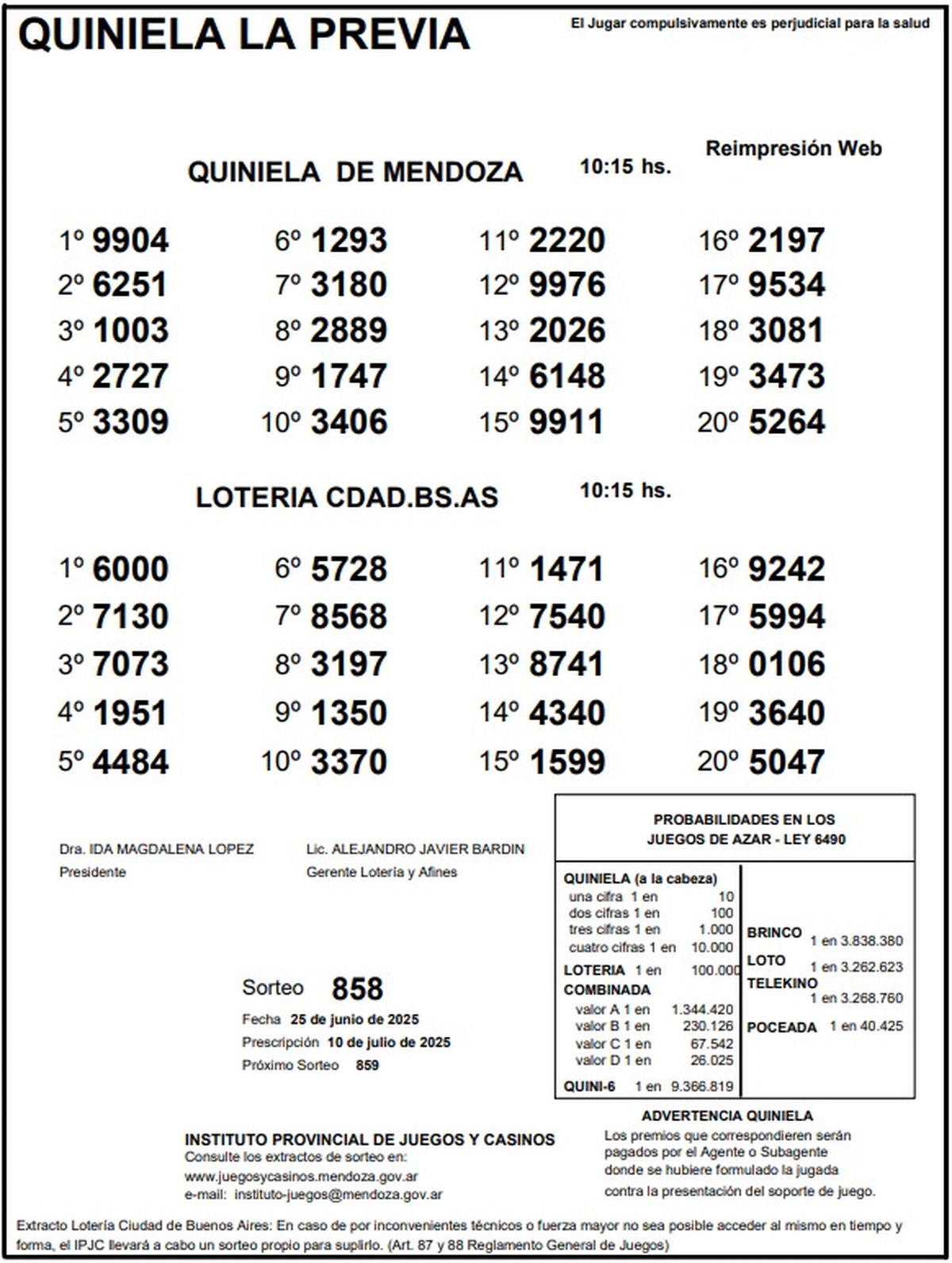 Resultados Quiniela de Mendoza: La Previa del 25 de junio de 2025