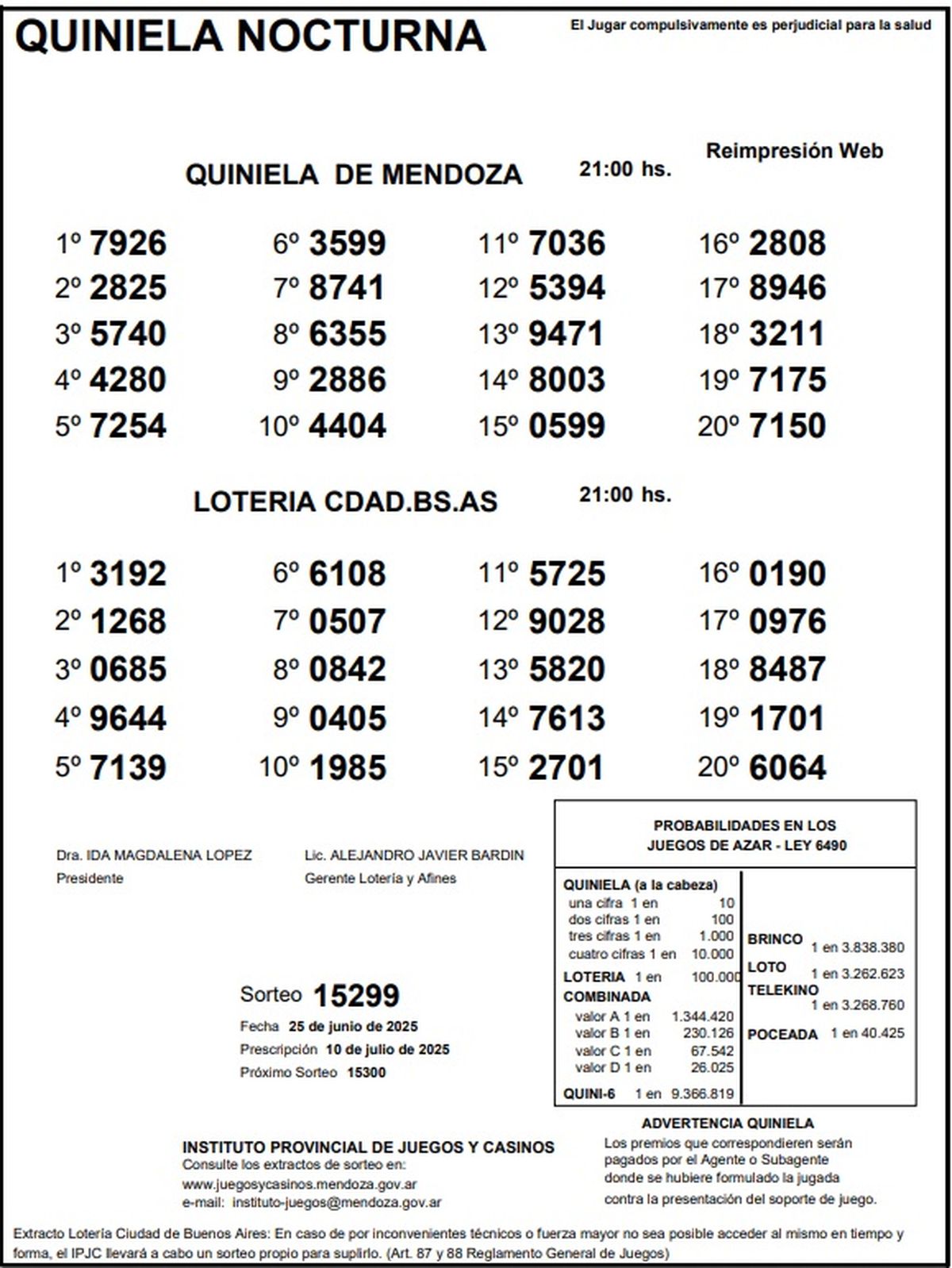 Quiniela de Mendoza: resultados de la Nocturna de hoy, 25 de junio
