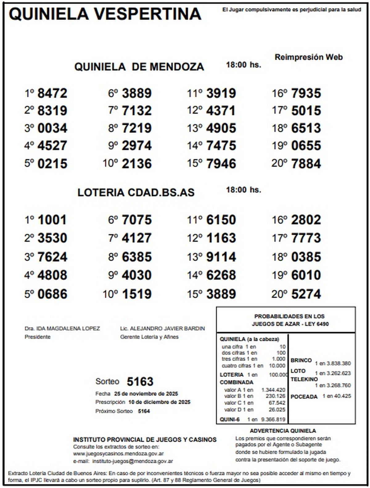 Resultados Quiniela de Mendoza: La Vespertina del 25 de noviembre de 2025