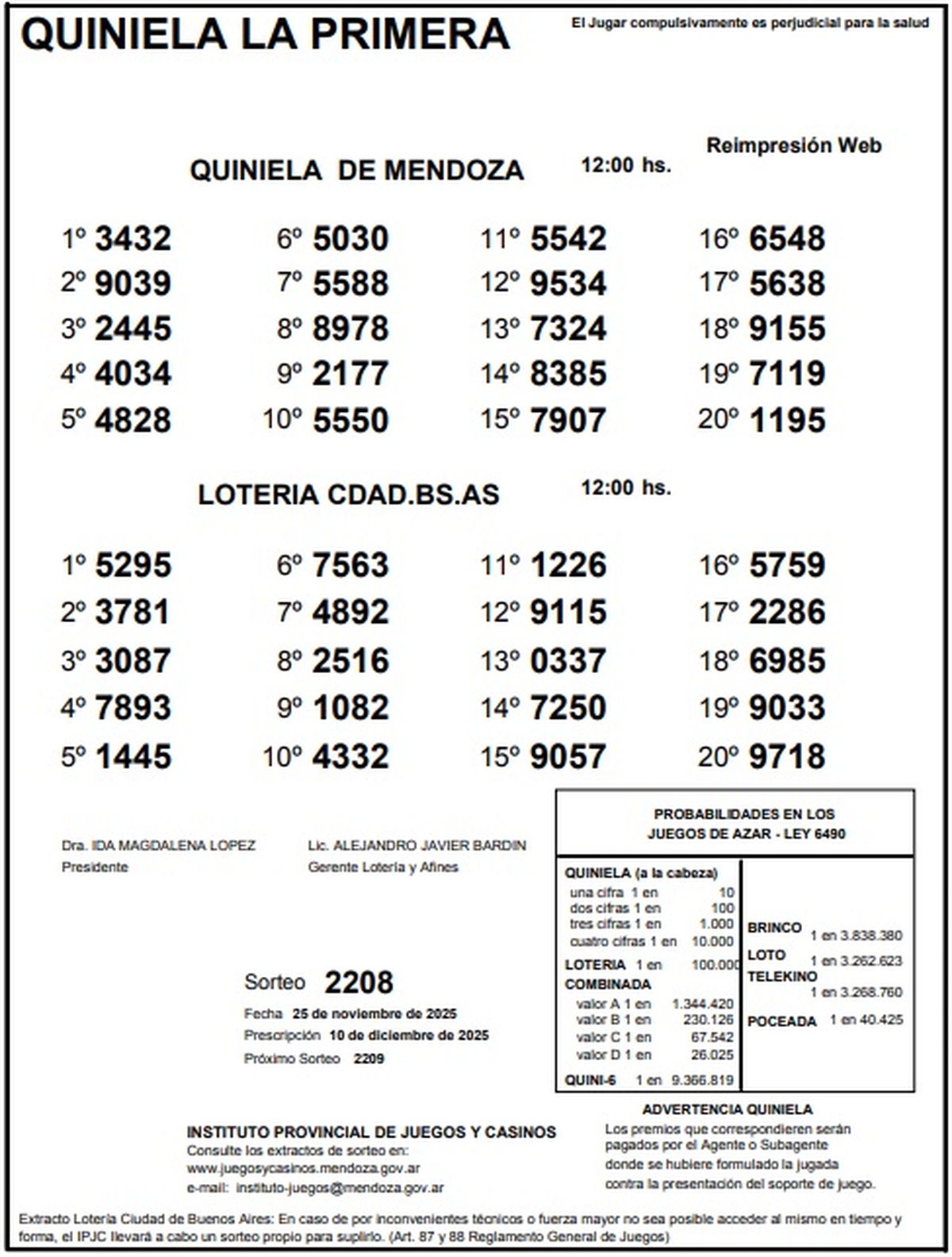 Resultados Quiniela de Mendoza: La Primera del 25 de noviembre de 2025